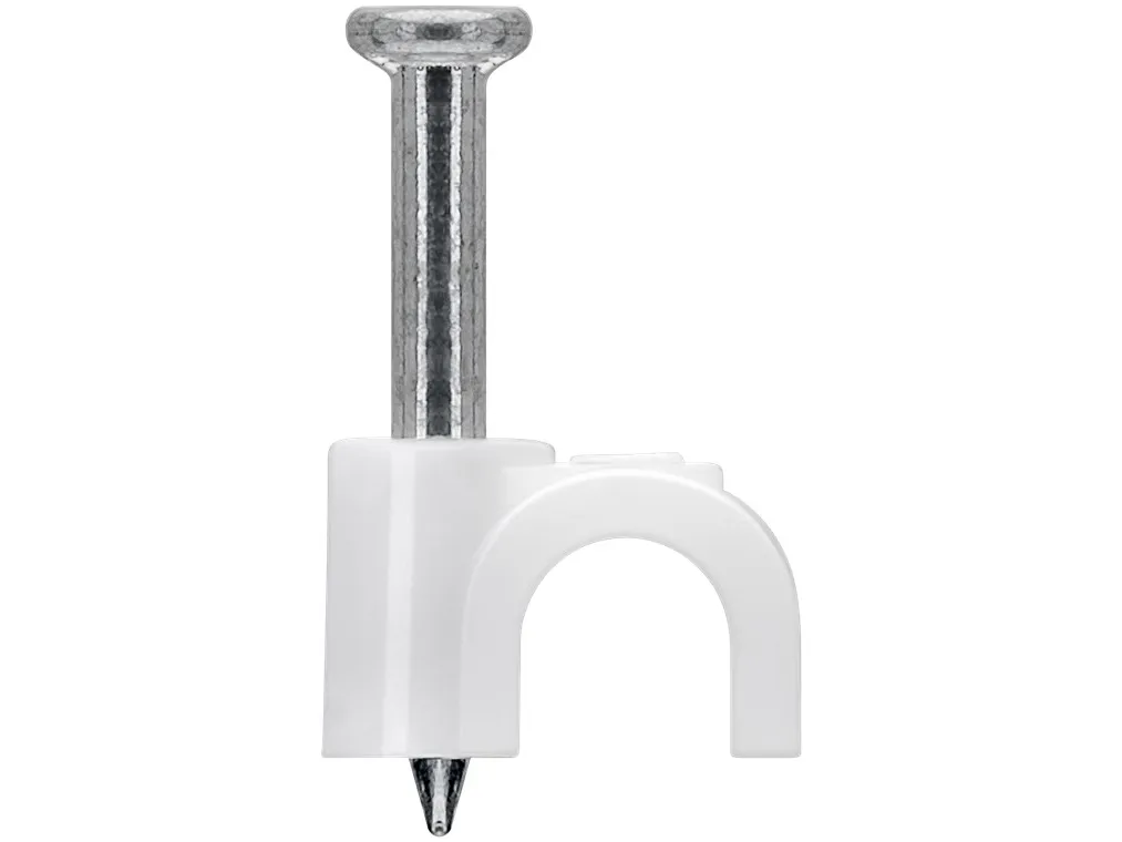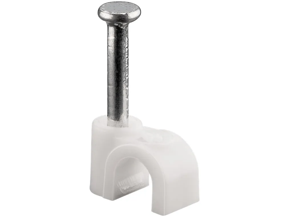 High-quality stabilised PE plastic and galvanised steel nails. You may use the cable clips with nail indoors and outdoors and achieve good insulation, corrosion resistance and aging resistance.Goobay Cable Clip 4 mm, white. Maximum bundle diameter: 4 mm, Product colour: White, Material: Polyethylene (PE). Height: 5.7 mm. Quantity per pack: 100 pc(s)
