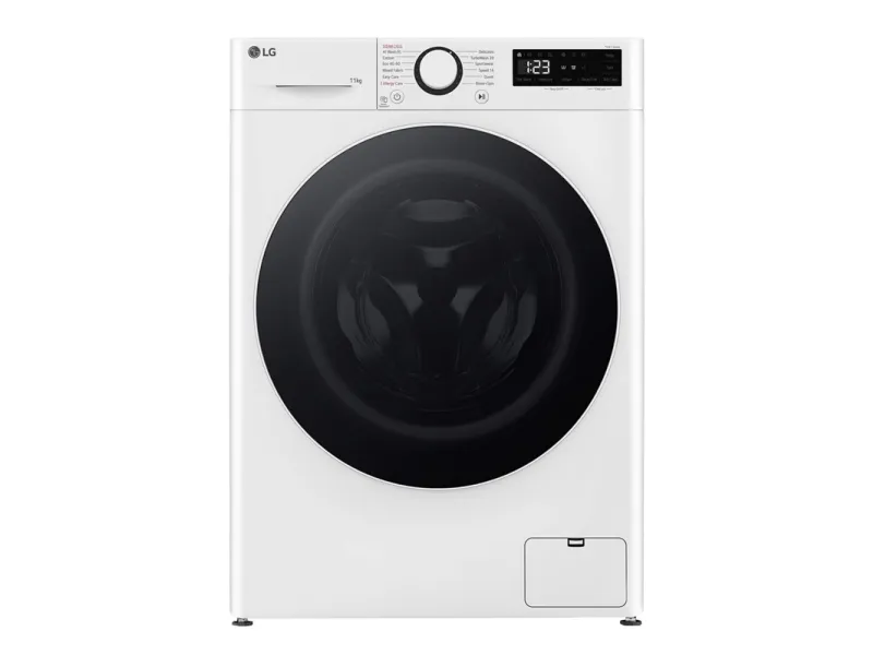 The LG Serie R5 F4WR511S0W offers a modern front-loading washing machine designed for effective and efficient cleaning. It comes with a generous loading capacity of 11 kg, perfect for larger households, allowing for the handling of substantial laundry tasks with ease. The powerful variable spin speed reaches up to 1400 rpm, ensuring clothes are thoroughly cleaned and spun dry while minimizing moisture content. This machine features an array of special programs including Eco 40-60, AllergyCare, and TurboWash 39, tailoring cleaning cycles for various fabric types and washing needs. This washing machine is IoT-compatible, enabling remote control and monitoring via a smartphone app. With a focus on energy efficiency, it holds an Energy Class A rating, consuming 0.474 kWh per cycle and only 54 liters of water. The model is designed with user-friendly electronic controls, making it simple to adjust settings with a touch-sensitive interface. Additional safety features like child security and anti-foam control provide peace of mind while using this dependable appliance.