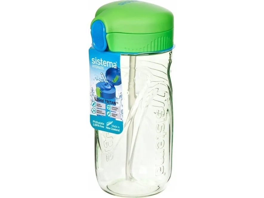 Tritan Quick Flip fra sistema er en bestseller blandt skolebørnene. Drikkedunken er fremstillet i det superstærke, brudsikre og ridsefri tritan plast. Drikkedunken har et fliplåg med en lille trykknap. Et enkelt tryk på knappen og frem kommer et sugerør i silikone, som gør det nemt at drikke af flasken - evt. i forbindelse med sportsaktiviteter eller cykelture. Tritan materialet kendetegner sig ved at være særdeles robust (impact resistant), krystalklart (ser ud som glas) og afgiver ikke smag. Flasken fås i de tre flotte farver: Minty Teal, Ocean Blue og Pink. Quick Flip kan skilles ad, så den nemt kan rengøres. Tåler opvaskemaskine og fryser. 100% fri for BPA og Phthalater. Indhold: 520ml. Vægt: 126g.