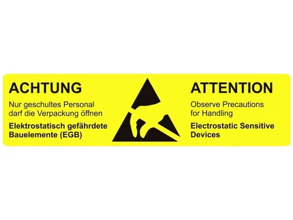 Udførelse: Papir, selvklæbende, ESD-logo, advarsel på tysk og engelsk