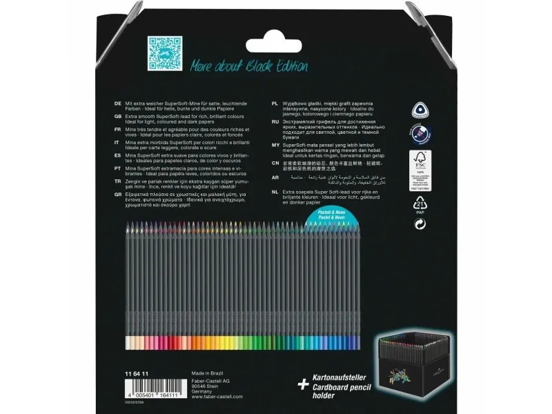 Black Edition Color Pencils - consists of color shades specially selected by Art teachers. Its triangular shape gives better control and comfort for children's little fingers. The smooth leads with less breakage and minimum lead flake provide better coverage and create brilliant effects on paper.