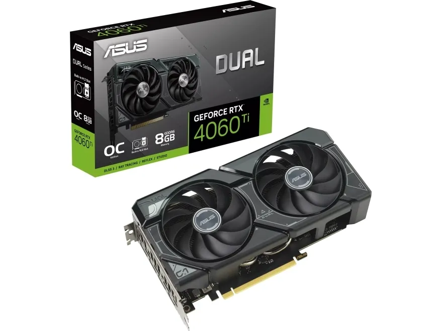 The ASUS Dual GeForce RTX 4060 Ti 8GB is built to deliver an exceptional gaming experience, featuring NVIDIA's GeForce RTX 4060 Ti graphics processor. With 8 GB of GDDR6 SDRAM and a memory speed of 18 Gbps, this graphics card provides performance for gaming and high-resolution tasks. Enjoy stunning visuals with a maximum external resolution of 7680 x 4320 and support for up to 4 monitors, making it ideal for immersive gaming setups or multitasking workflows.