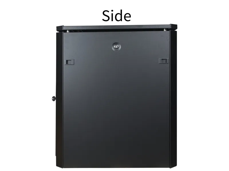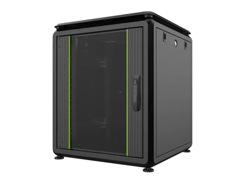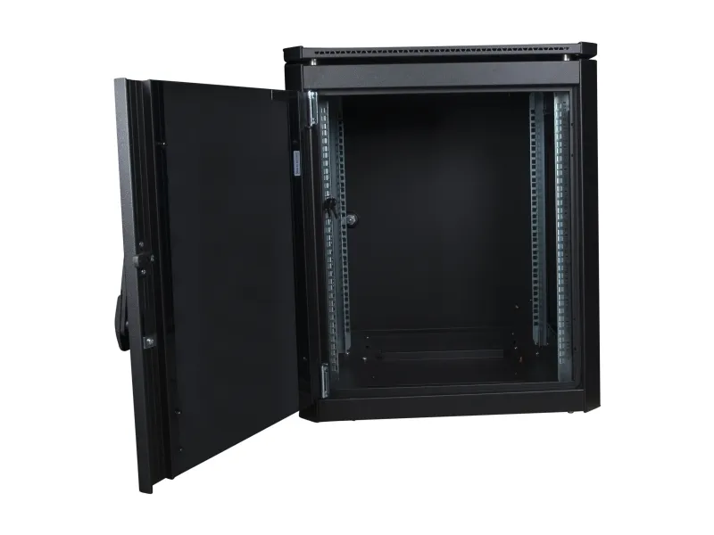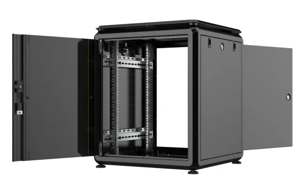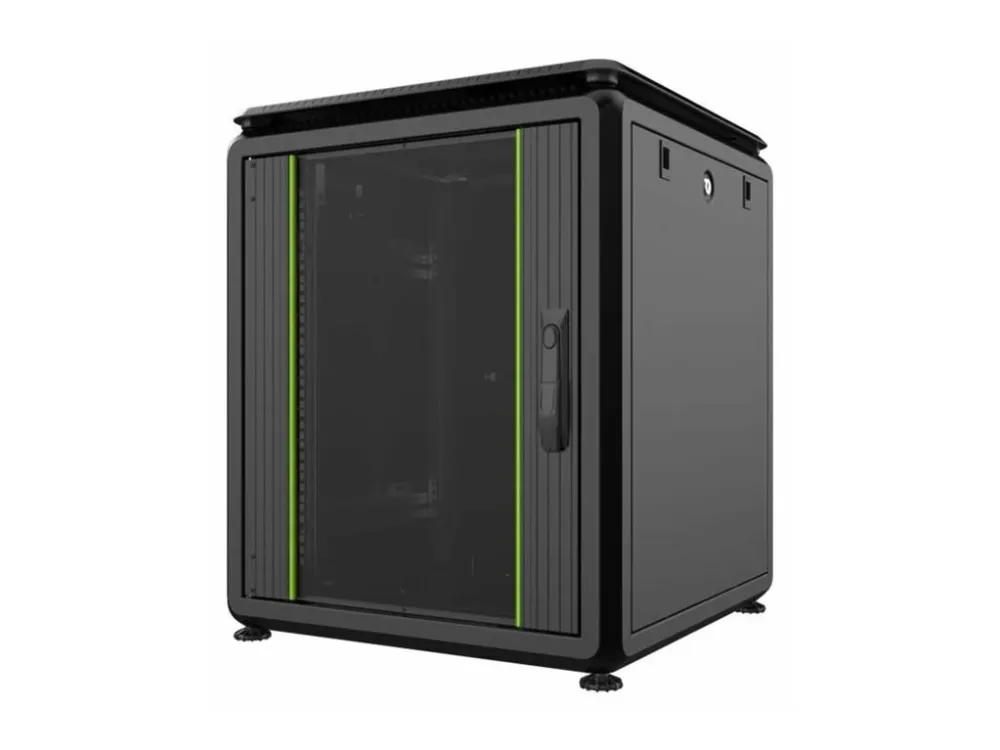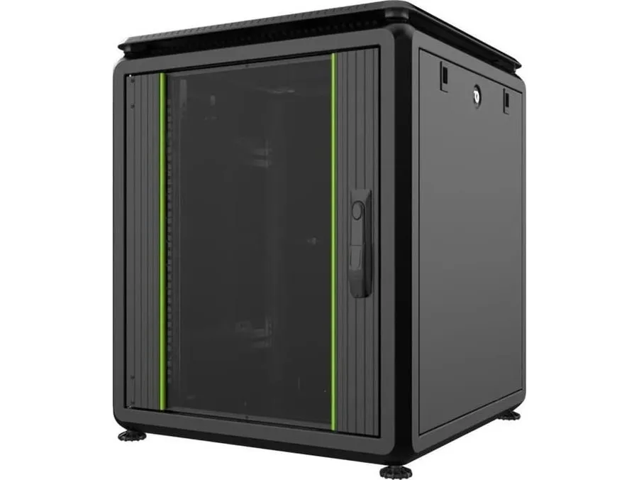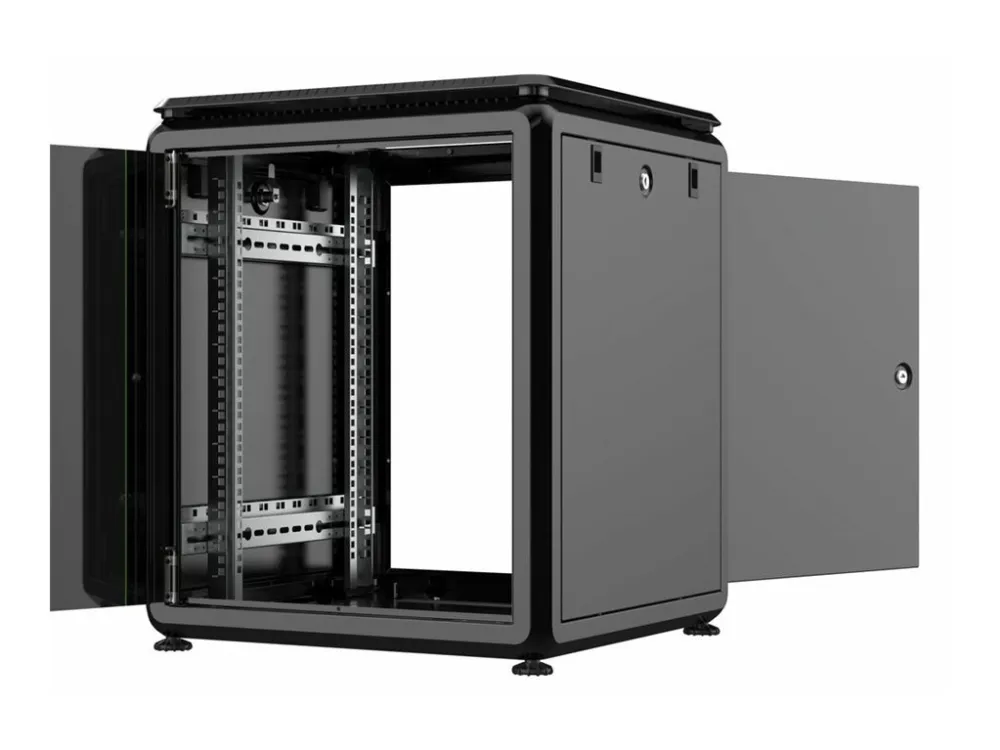 Låsbar bakdør, tastaturlås, låsbart sidepanel, justerbare høydeføtter, avtakbare sidepaneler, stålbakdør, justerbare monteringsskinner, passiv kjøling, tempered glass front door with metal frame, avtakbar inngangsdør, forhåndsmontert, removable rear door, rubber edged cable entry