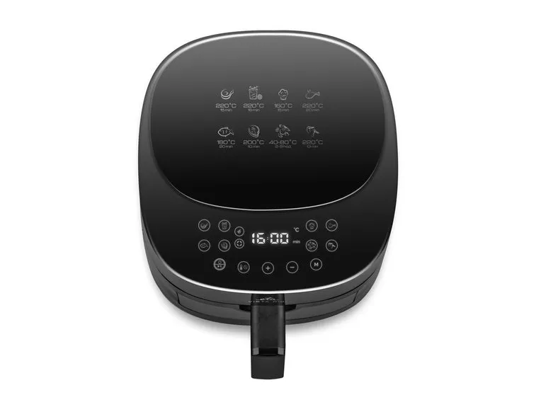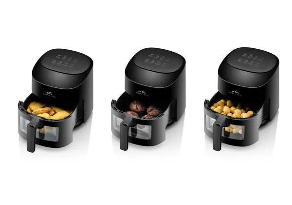 Experience the convenience of healthier cooking with the ETA Vista Digi 1168 90000 hot air fryer. Designed for versatility, this appliance combines powerful performance with user-friendly features, making meal preparation simple. The hot air fryer has a 4.3-liter capacity, allowing the preparation of various dishes from crispy fries to fluffy desserts. The touch-sensitive control panel provides 8 cooking programs tailored for specific foods, including functions for fish, steak, and dehydrating ingredients.
