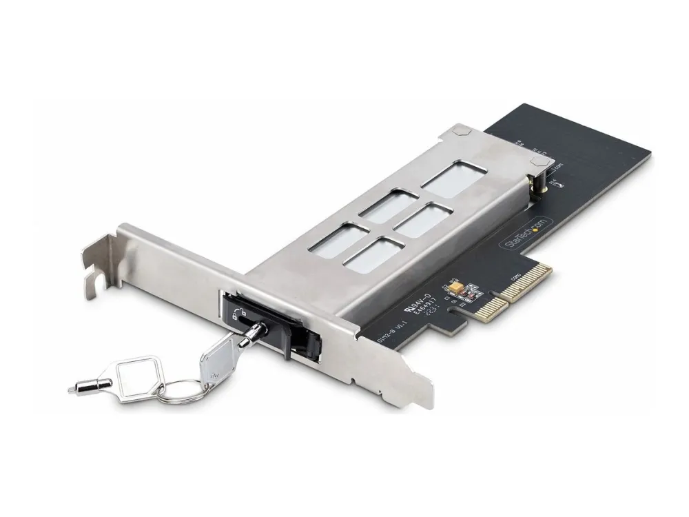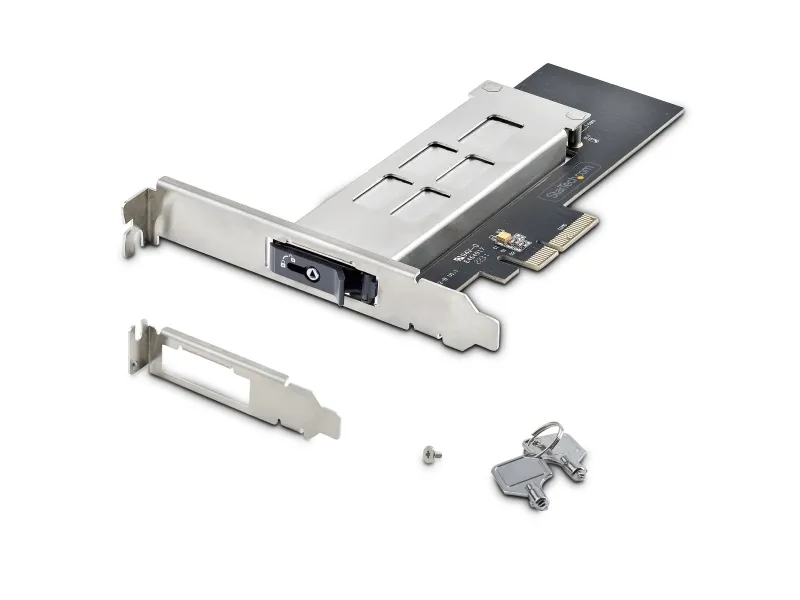 Upgrade your storage with the StarTech.com M.2 NVMe SSD to PCIe x4 Mobile Rack/Backplane. Designed for seamless integration into PCI Express expansion slots, this adapter offers a toolless installation process, making it easier than ever to enhance your system's storage capabilities. With support for PCIe 4.0, enjoy data transfer rates up to 64 Gbit/s for rapid access and storage of your critical data. The inclusion of a key lock with 2 keys ensures your data remains secure, while the durable stainless steel construction and anti-vibration springs protect your investment. Compatible with a wide range of M.2 form factors and featuring support for S.M.A.R.T. and TRIM, this mobile rack/backplane is the perfect solution for professionals and enthusiasts looking to upgrade their storage with speed, security, and reliability.
