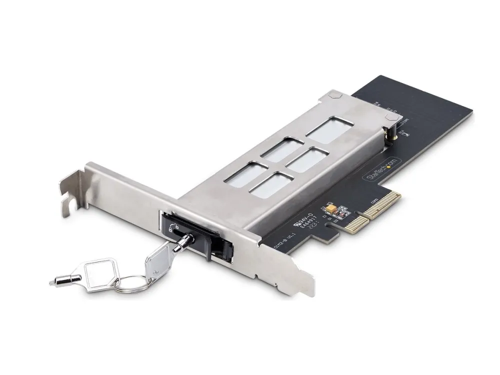 StarTech.com M.2 NVMe SSD to PCIe x4 Mobile Rack/Backplane with Removable Tray for PCI Express Expansion Slot, Tool-less Installation, PCIe 4.0/3.0 Hot-Swap Drive Bay, Key Lock - 2 Keys Included - grensesnittsadapter - M.2 NVMe Card / PCIe 4.0 (NVMe) - PCIe 4.0 x4