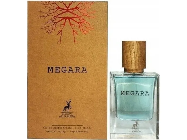 Megara by Maison Alhambra er en unisex duft, der er inspirreret havet , en frisk og livlig duft, inspireret af havbrisen og citrusfrugternes vitalitet og friskhed. Åbningen er en mousserendeduft kompination af topnoter af bergamot og citron, hvilket giver duften et stænk af lys og forfriskende energi.