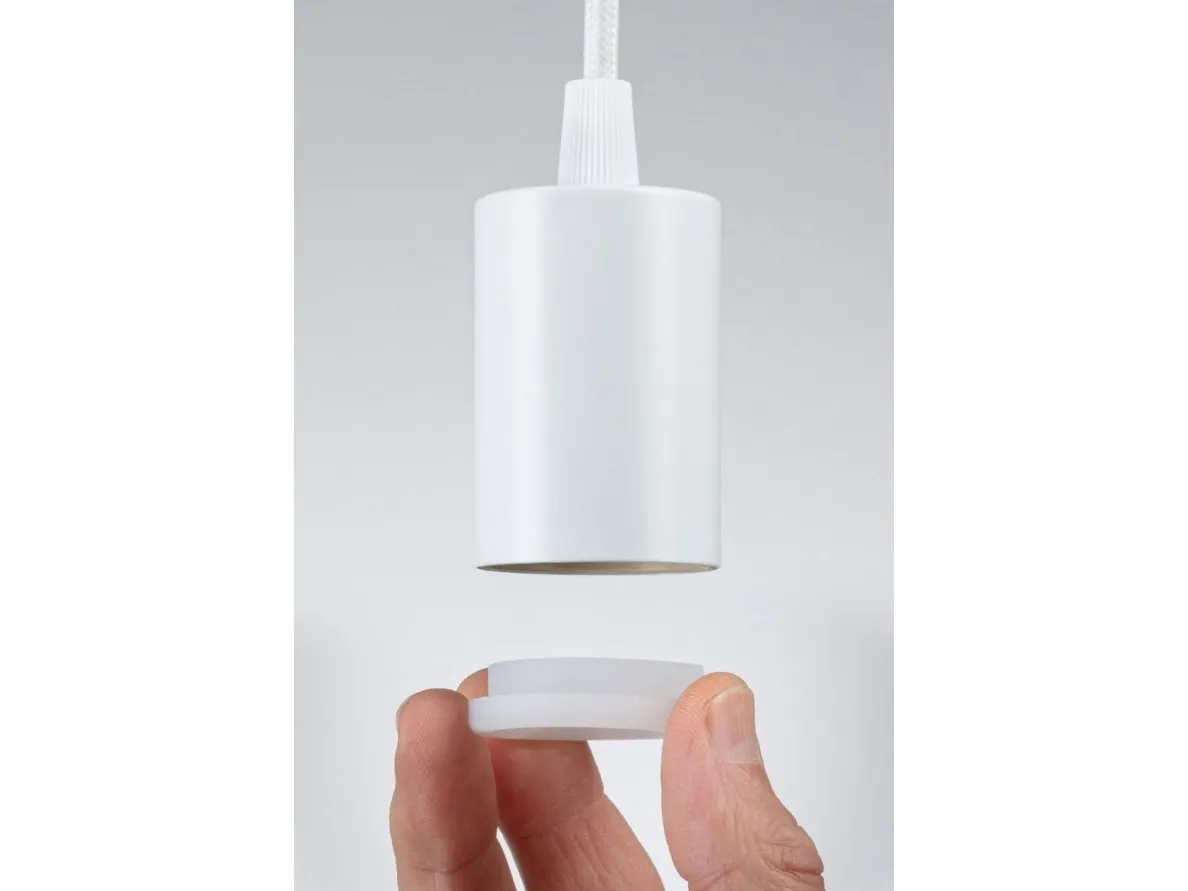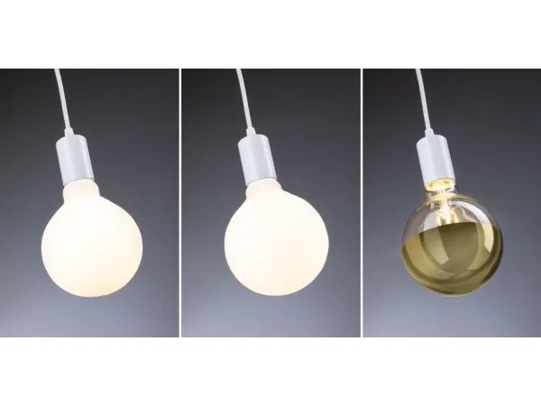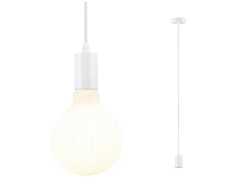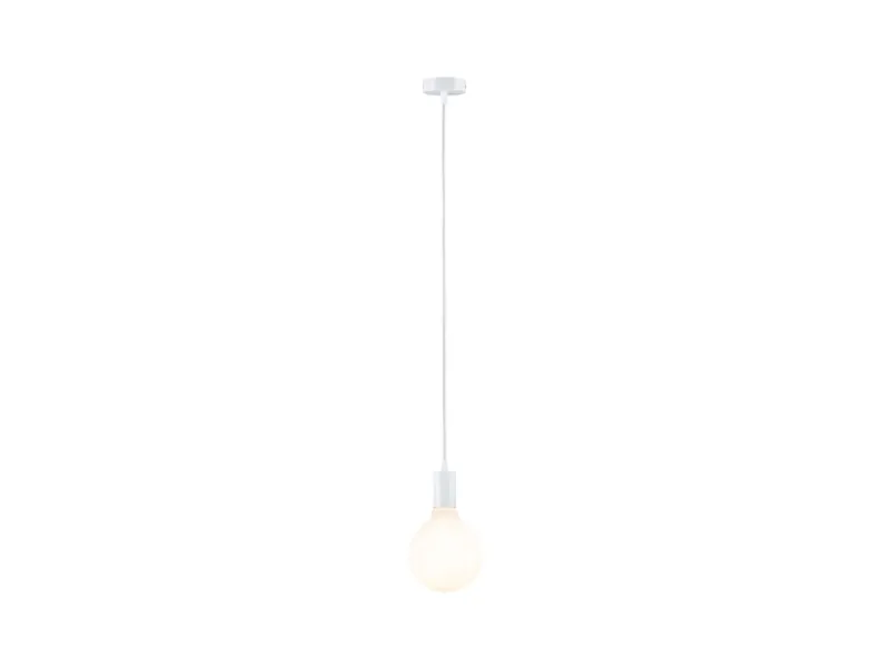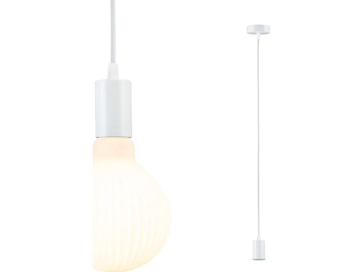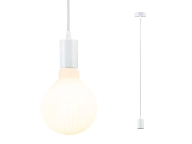 Pendellampe Ravi IP44 E27 maks. 60W hvid mat Kabel indkapslet i stof IP44 stænkbeskyttet til badeværelse og lignende rum Til lyskilder med E27-sokkel op til maks. 60 watt Husk også at bestille den passende lyskilde! Mix & Match look er absolut trendy og gør det muligt for dig at forskønne hjemmet med et særligt blikfang. Den moderne pendullampe Ravi i hvid mat er et perfekt bevis herpå. Med det ultraminimalistiske, moderne design og den attraktive farvekombination bliver den til en ægte højdepunkt i hjemmet. Kombineret med Paulmann lyskilder fra Lampen ser særlig harmonisk ud i kombination med lyskilder fra serierne White Lampion eller Metallic Glow. Alternativt kan lyskilder med E27-sokkel op til maks. 60 watt anvendes. Takket være IP44-beskyttelsen kan væglampen Ravi også anvendes på badeværelset.