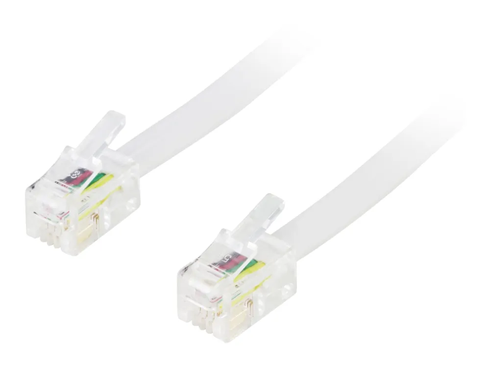 Färdig modularkabel med 4-pin RJ-kontakter. 4st anslutna ledare. Kan t.ex. användas för telefoni.