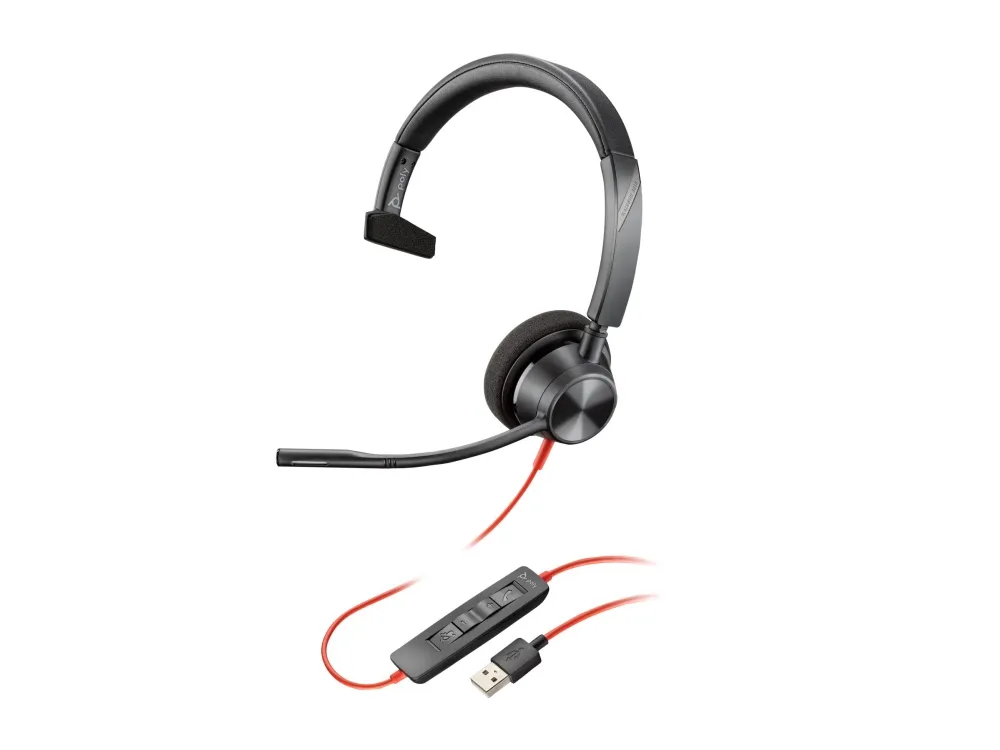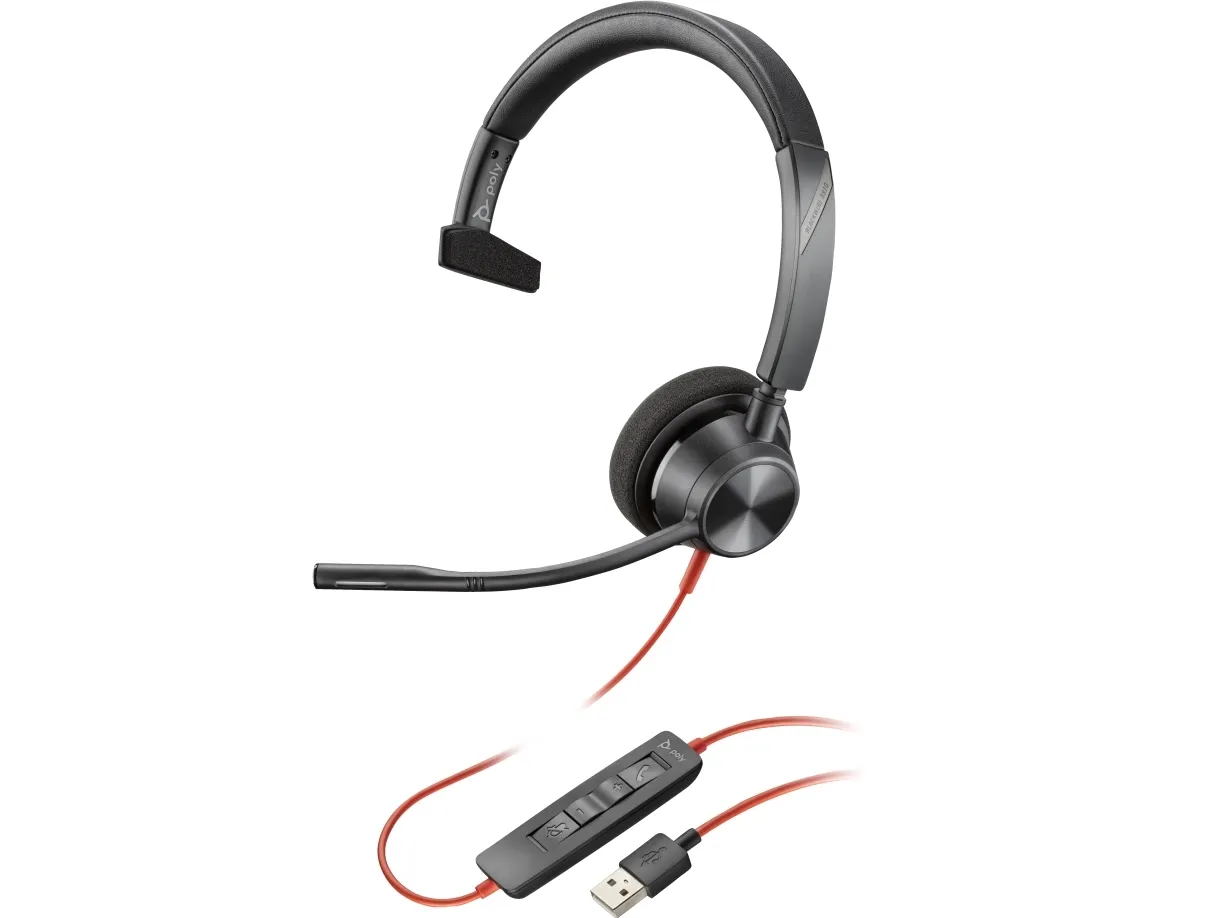 The HP Inc. Poly Blackwire 3310 headset is designed for professionals who demand high-quality audio and convenience. Featuring a frequency response of 100 - 10000 Hz and dynamic EQ optimization, this monaural, on-ear headset delivers clear, detailed sound for both communication and multimedia use. The boom-mounted microphone ensures your voice is captured with clarity, while in-cord controls for answer/end, mute, and volume adjustments offer easy management of your audio experience. With a sensitivity of 116 dB and a maximum sound pressure of 118 dB, the Poly Blackwire 3310 provides ample volume in various environments. Its compatibility with both Mac and Windows via a USB connection makes it a versatile choice for professionals using multiple devices or platforms. Whether for use with a computer or portable electronics, the Blackwire 3300 series headset is engineered to enhance your audio experience.