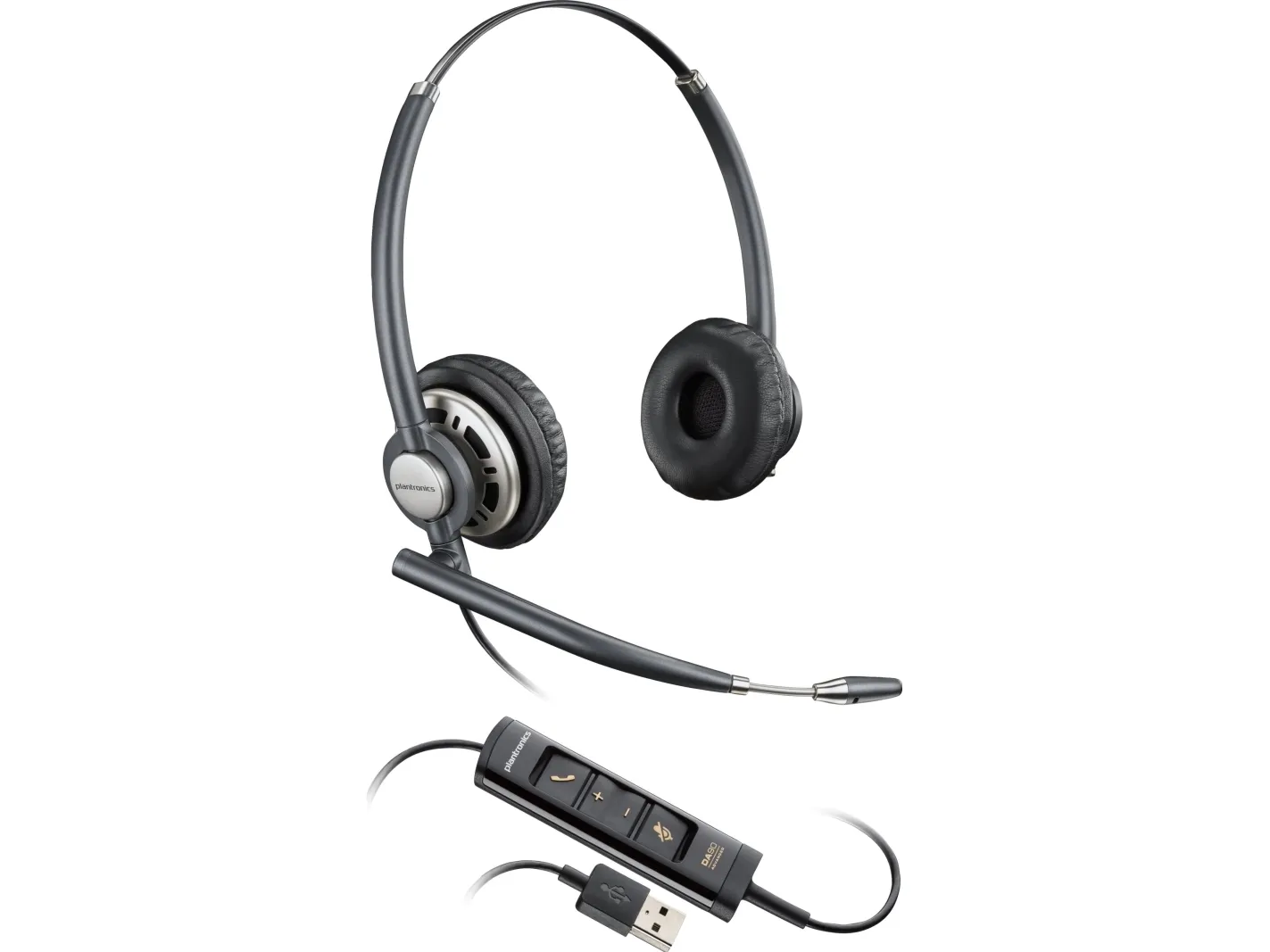HP Inc. Poly EncorePro 725-hodesettet er utviklet for profesjonelle som ønsker høy lydkvalitet og komfort. Med sin brede frekvensrespons på 100 - 6800 Hz kan brukerne nyte klar og naturlig lyd under samtaler. Hodesettets støydempingsteknologi blokkerer effektivt bakgrunnsstøy, slik at samtalene ikke bare er klare, men også uten avbrytelser. Komforten er i høysetet, med øreputer i kunstskinn som gjør det mulig å bruke hodetelefonene over lengre tid uten ubehag. I tillegg gir mikrofonens 290° rotasjonsmulighet fleksibilitet, noe som gjør det enkelt å finne den perfekte vinkelen for stemmeopptak. USB-A-tilkoblingen gjør det enkelt å koble til de fleste enheter, slik at du slipper kompliserte oppsettprosedyrer. Poly EncorePro 725 leverer både ytelse og komfort, enten det gjelder forretningssamtaler, telefonkonferanser eller bare musikk.