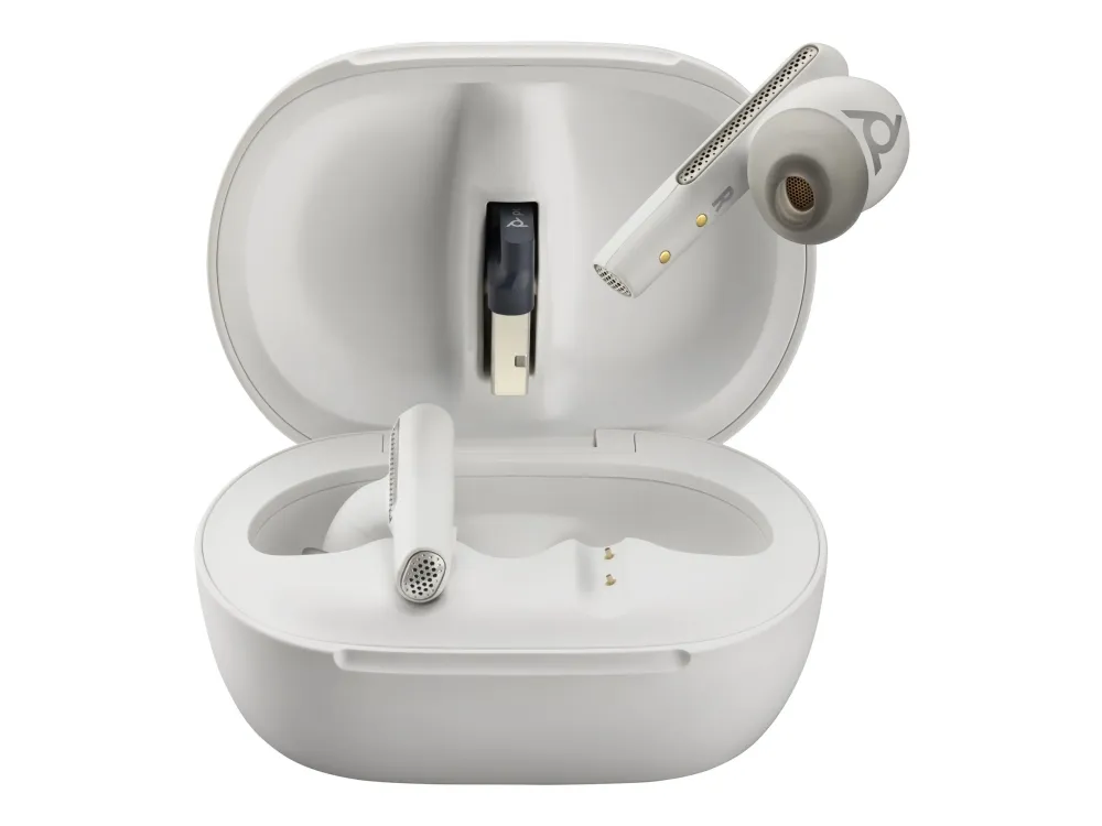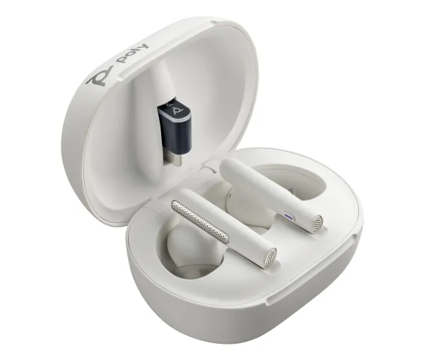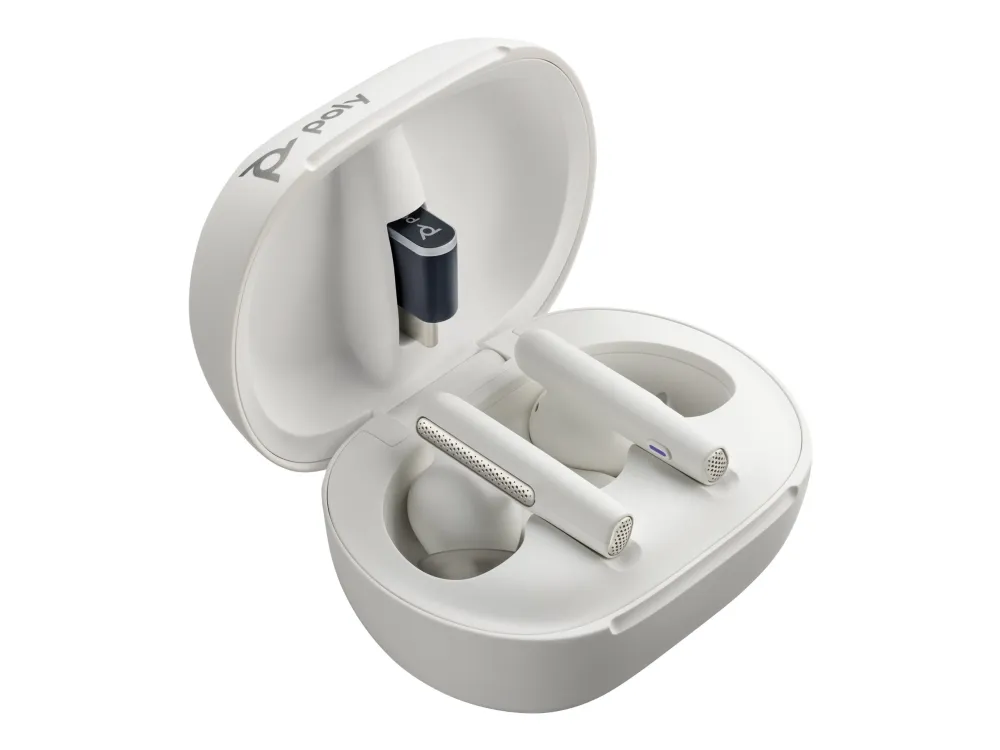 HP Poly Voyager Free 60+ UC - True wireless-hodetelefoner med mikrofon - i øret - Bluetooth - aktiv støydemping - USB-A via Bluetooth-adapter - sandhvit - Zoom Certified