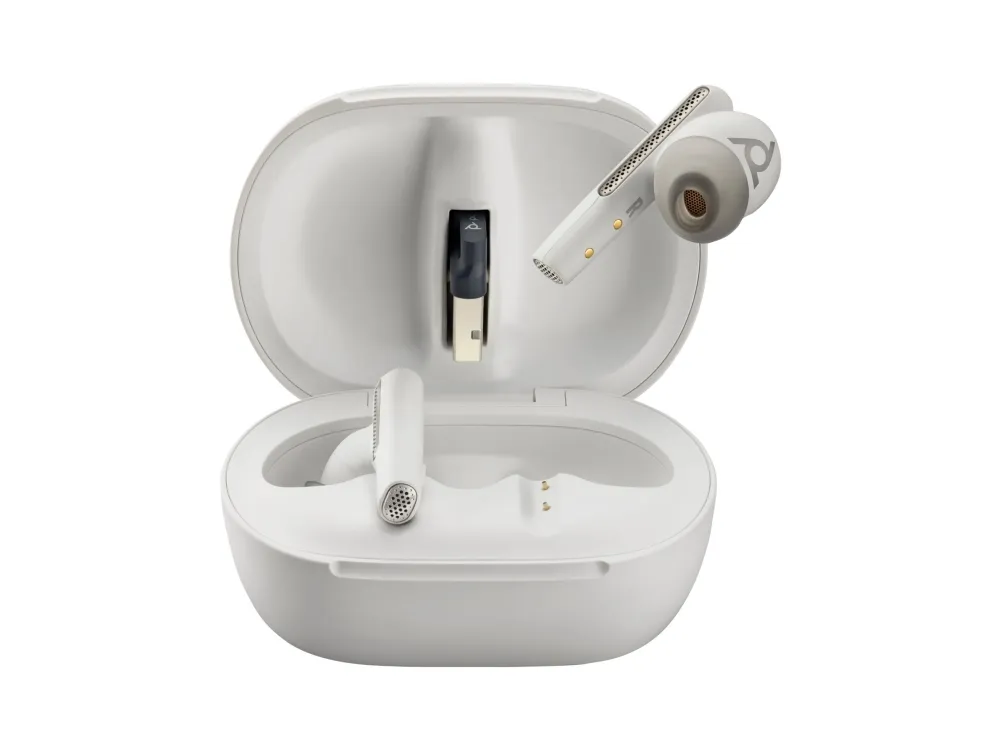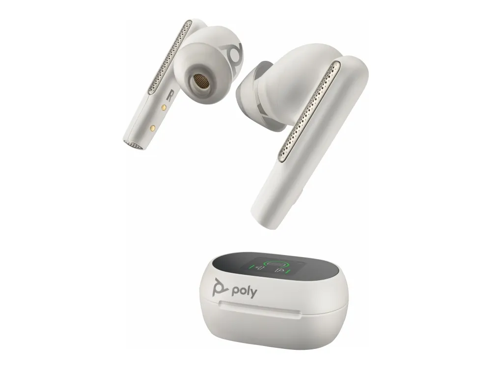 HP Poly Voyager Free 60+ UC - True wireless-hodetelefoner med mikrofon - i øret - Bluetooth - aktiv støydemping - USB-A via Bluetooth-adapter - sandhvit - Certified for Microsoft Teams