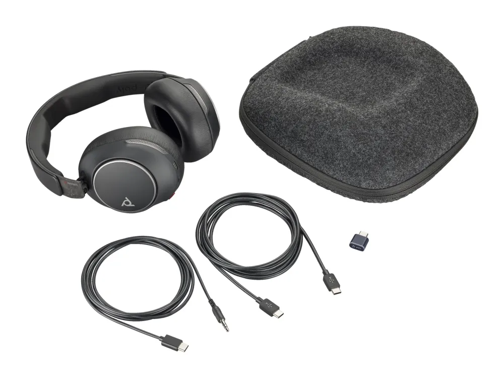HP Poly Voyager Surround 80 UC - Voyager Surround 80 series - hodesett - full størrelse - Bluetooth - trådløs - aktiv støydemping - USB-C via Bluetooth-adapter - svart - Certified for Microsoft Teams Open Office