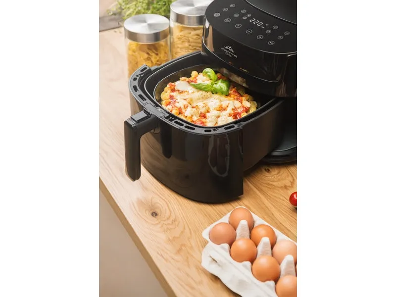 The ETA Fritta Digi 3168 90000 hot air fryer combines versatility and efficiency in one sleek appliance. With a generous capacity of 7.2 liters, it allows for cooking a variety of meals, including meat, fish, vegetables, and even cakes, making it an ideal choice for families and meal preppers alike. The touchscreen control panel paired with an intuitive timer function enables precise cooking, while the max temperature of 220°C ensures that food is perfectly crisped every time. Designed for safety and convenience, this hot air fryer features a heat insulated handle and safety lock, providing peace of mind during use. The non-stick coating and removable basket further enhance the ease of cleaning, ensuring that post-meal tidy-up is quick and simple. With eight pre-set programs tailored for different cooking needs, the ETA Fritta Digi 3168 90000 elevates everyday cooking into a delightful culinary experience.