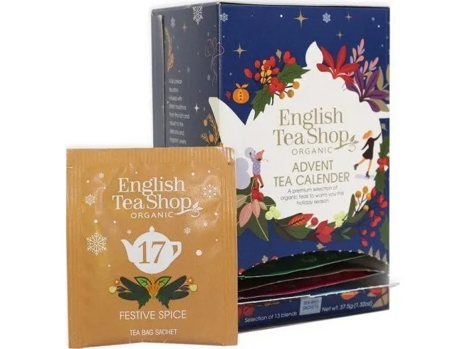 Adventskalender English Tea Shop Økologisk te 13 smaker 25 x 1,5 g blå