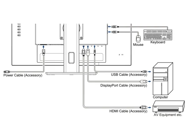 1 x USB-kabel 1 x HDMI-kabel 1 x DisplayPort-kabel