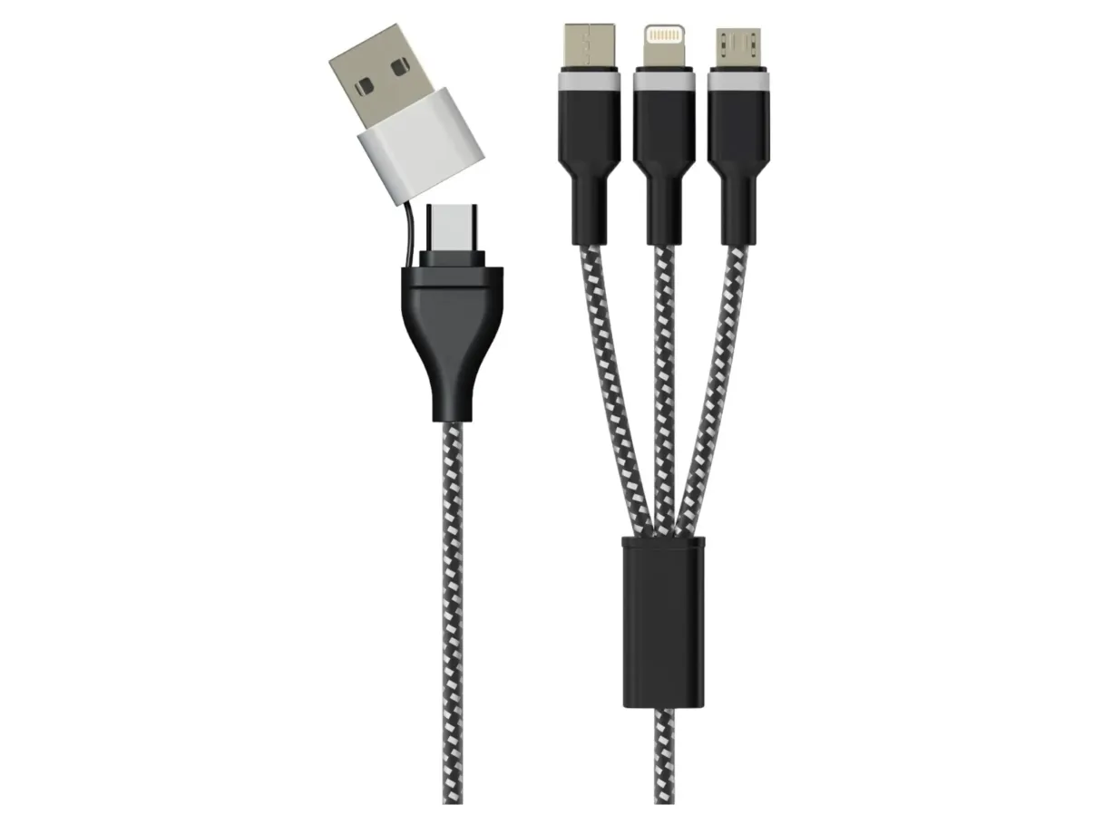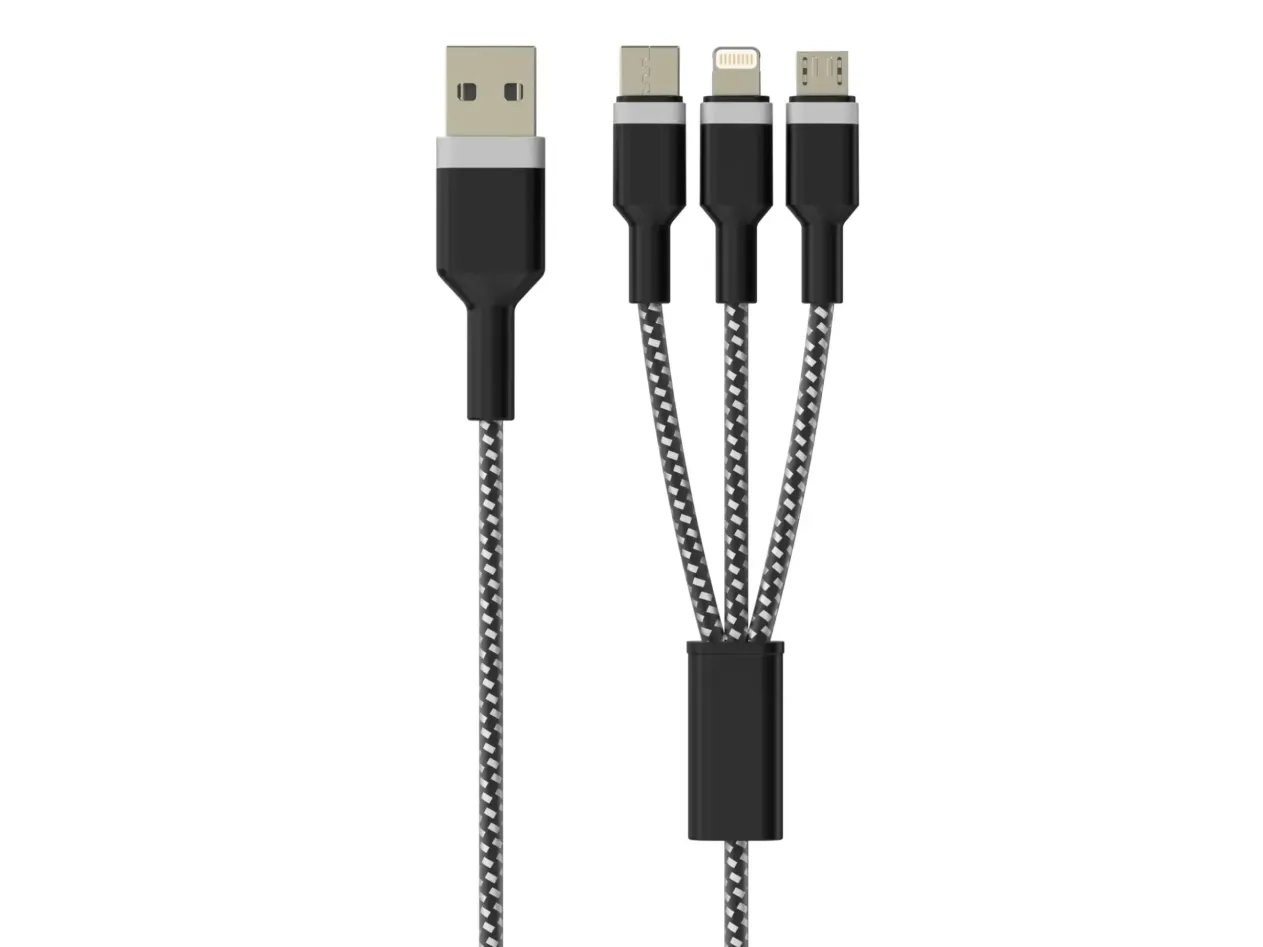 Dette Sinox-kabel kan bruges til at oplade de fleste enheder, der bruger USB C, Micro USB og Lightning.