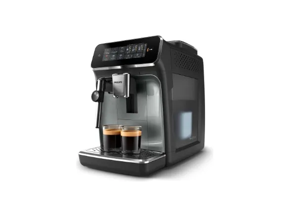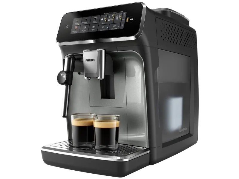 The Philips 3300 series automatic coffee machine combines convenience, customization, and quality in one sleek package. Designed for the coffee aficionado, it offers a variety of beverage options from espresso to ice coffee, all customizable with the My Coffee Choice feature. The ceramic grinder ensures a consistent grind, while the SilentBrew technology makes your morning routine quieter. With a 275 g coffee bean container and a 1.8 L water tank, it's ready to handle any coffee demand. The dishwasher-safe drip tray and milk frother simplify cleaning, making maintenance a breeze. Whether you're in the mood for a strong espresso or a creamy latte, the Philips 3300 series has you covered.