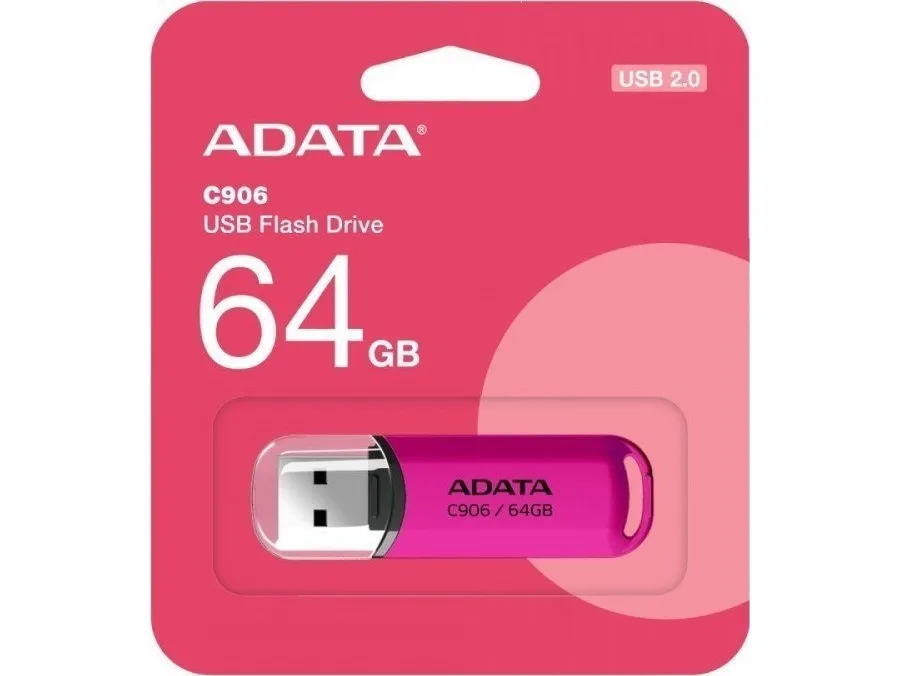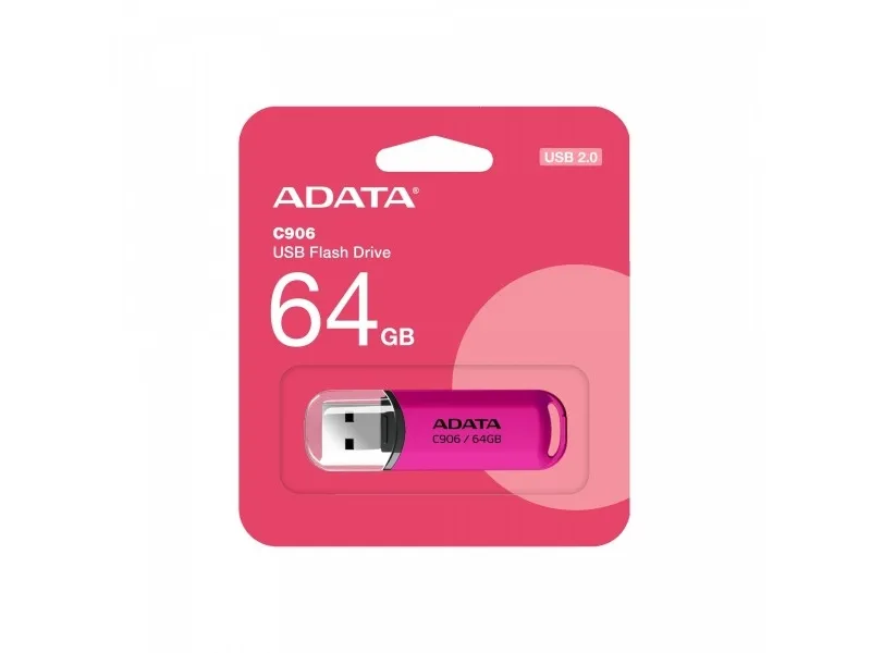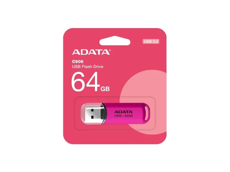 With capacities ranging from 32GB to 64GB, the C906 is made to suit everyone's needs. Its ability to store music, photos, your media library and even personal files, and the ability to transport and transfer them via high-speed USB 2.0 interface make this flash drive a must-have.ADATA AC906-64G-RPP. Capacity: 64 GB, Device interface: USB Type-A, USB version: 2.0. Form factor: Cap. Weight: 9 g. Product colour: Pink