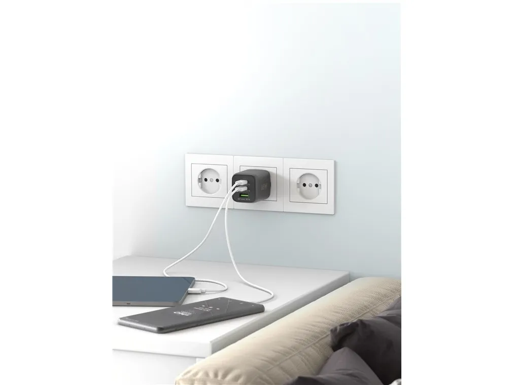 2x USB-C™-porte (Power Delivery) og 1x USB-A-port (Quick Charge 3.0) Farveversion Med den kraftige effekt på 65 W og de universelle USB-C™-tilslutninger passer opladningsadapteren til stort set alle enheder - fra smartphones til højtydende bærbare computere med høj ydeevne Hurtig lademodus forsyner bærbare computere som MacBook via USB-C™ Power Delivery, mens smartphones samtidig oplades med høj hastighed via USB-A Quick Charge GaN-teknologiske halvledere muliggør hurtigere og mere effektiv opladning og et lettere og mere kompakt design sammenlignet med traditionelle opladere Pladsbesparende, let og fleksibel - USB-opladeren erstatter tre individuelle opladere med USB-A- og USB-C™-stik med generøse tre porte Superkompakt og letvægtsdesign gør USB-C™-opladeren til en praktisk opladningsløsning til op til tre enheder på én gang - både hjemme og på farten Vægopladeren er kompatibel med smartphone-mærker som Apple iPhone, Samsung, Xiaomi, LG og Huawei samt tablets som Apple iPad og bærbare computere fra populære producenter som Acer, HP, Fujitsu og Razer