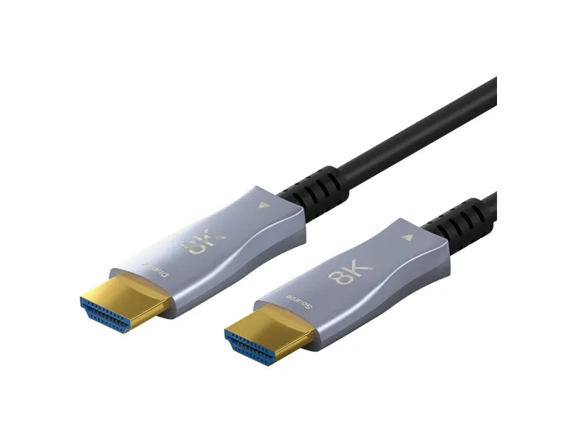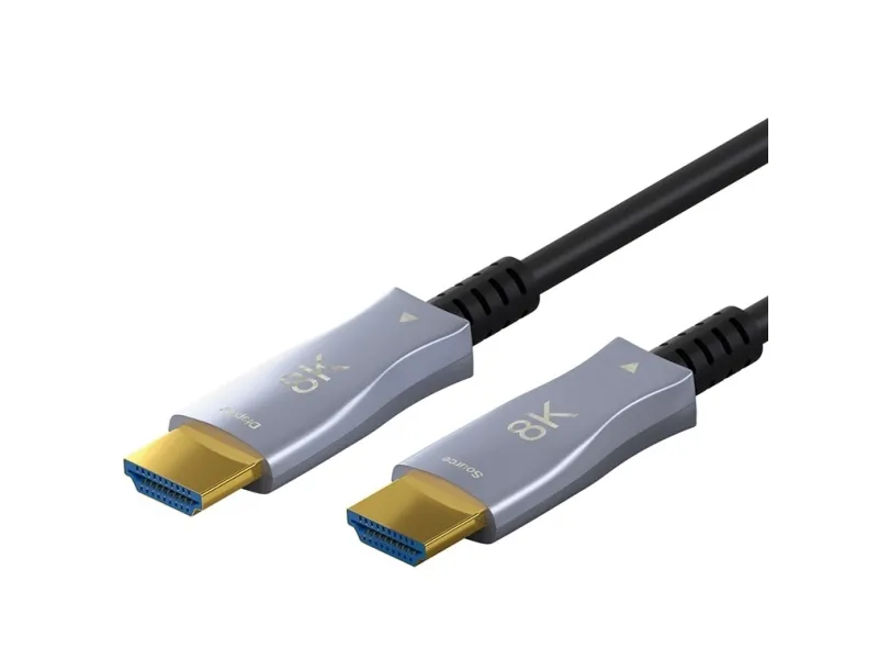8K/60Hz Kabellængde Understøtter UHD-signaltransmission i høj opløsning med op til 8K @ 60 Hz (4320p), en maksimal transmissionshastighed på op til 48 Gbit/s og alle almindelige funktioner som ARC (Audio Return Channel), HDCP eller 4K-indhold med 3D 8K fiberoptisk kabel baseret på AOC (Active Optical Cable) med en hybrid fiberoptisk kobberleder til interferensfri transmissioner Takket være AOC-teknologien overbygger kablet lange kabelstrækninger uden tab og opnår høje datahastigheder uden forstærkning Fiberoptikkablet konverterer elektriske datasignaler til optiske signaler og tilbage til elektriske signaler i enden af kablet (unidirektionelt) De smalle, robuste metalpropper med bøjningsbeskyttelse er særligt velegnede til snævre rum Ultrahøjhastigheds HDMI™-kablet forbinder tv-apparater og skærme med spilkonsoller som PlayStation 5 eller Xbox Series X samt projektorer og streamingmodtagere som Amazon Fire TV eller Apple TV Glasfibermaterialet gør kablet meget fleksibelt og giver dermed en meget lille bøjningsradius