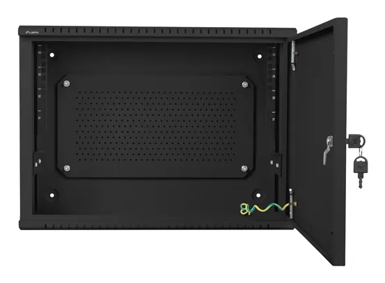 The Lanberg WAF1 Series rack cabinet offers efficient storage solutions with its low-profile design and sturdy construction. Measuring 540 x 200, this wall-mountable cabinet is equipped with two vertical mounting rails and two horizontal mounting rails, providing space for organizing equipment while supporting a weight limit of 60 kg. The assembled metal structure features a ventilated design with a mesh rear panel and ventilated sides, ensuring optimal air circulation to keep your devices cool. With practical features such as cable access openings, a single-leafed door that opens to 220°, and compliance with multiple standards including ETSI and IP20, the Lanberg rack cabinet is built for functionality and durability. The included grounding cable, M6 screws, DIN rail clip, and front lock make installation straightforward, providing a complete solution for equipment management.