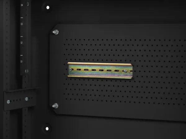 Dobbeltsidig, nettbakpanel, kabeltilgangsåpninger, single-leafed, 1 mm øvre og nedre paneltykkelse, montert, ventilated side panels, 1.5 mm rail thickness, 2 vertical mounting rails, ventilated top, ventilated bottom, 1.2 mm frame thickness, 220° door opening, 2 horizontal mounting rails