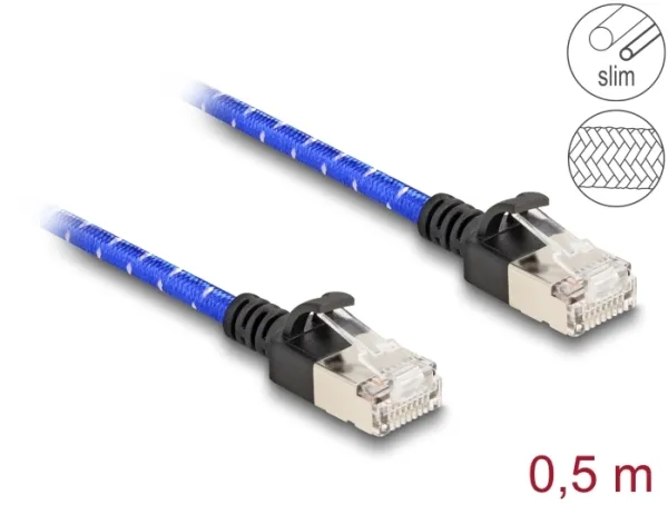 Discover the Delock CAT 6a network cable, engineered to meet the demands of high-speed network environments. This cable features a durable braided nylon jacket and gold-plated pins, ensuring both flexibility and a reliable connection. With an American Wire Gauge (AWG) of 32, it offers a slim and manageable design, making it easier to install and organize. The cable's snagless design further simplifies installation, preventing snags and facilitating a smoother setup process. Designed for performance, it supports tested frequencies of up to 500 MHz, enabling efficient data transmission across your network. Whether for home or office use, this network cable by Delock provides a dependable solution for your connectivity needs.