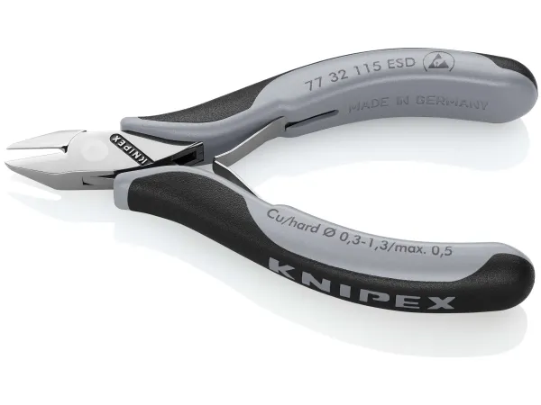 Robust, belastningsoptimeret design med slørfrit indstiksled. Slanke håndtag, der er hævet mod tangens hoved, sørger for et følsomt og behageligt greb mellem tommel- og pegefinger. lavt kraftforbrug via meget høj udveksling. Belastningsoptimeret formgivning for en mere direkte fornemmelse for arbejdet. Dobbelt fjeder med lav friktion for jævn og smidig åbning. Spejlpolituren giver i forbindelse med en fin oliefilm en god rustbeskyttelse - ingen forstyrrelser i koblingskredsløbet pga. af afskallende kromdele. Skærekanterne er desuden laserhærdede, skærekanternes hårdhed er ca. 62 HRC. spidst hoved, med lille facet.