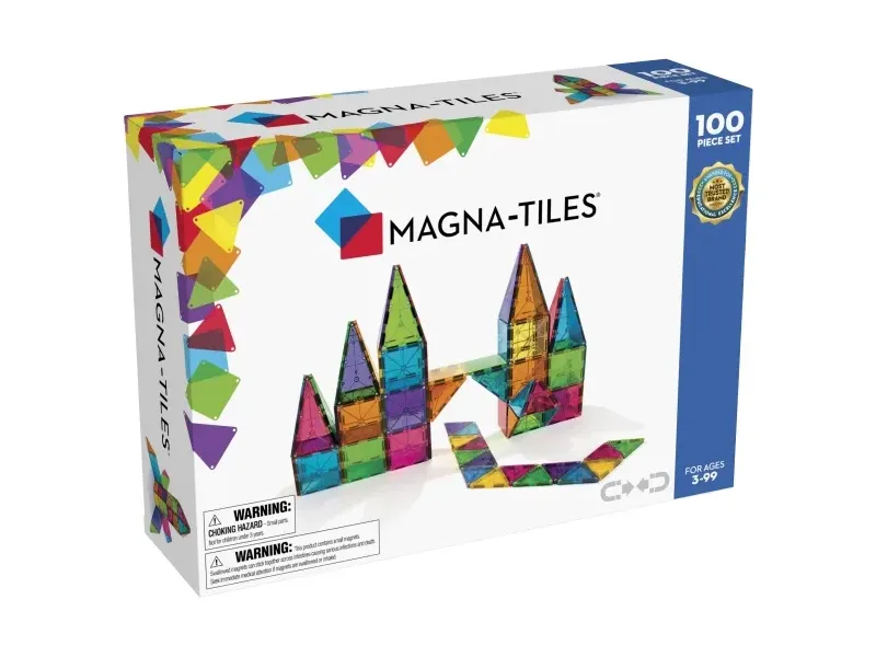 Are you looking for the best starter set for larger families and classrooms? Perhaps you need more tiles for big builds and bigger imaginations? Check out the Classic 100-piece set, only from the MAGNA-TILES® brand! Vibrant and amazingly versatile, these high-quality magnetic tiles are just the right size for little hands and perfect for cool learning activities, fun experiments and countless hours of open-ended play. MAGNA-TILES® sets provide a powerful learning tool for young children with inquisitive minds. Use them to get a head start on learning shapes, colors, matching and basic building skills. Math, science, spatial and tactile skills? Check! Creativity, problem solving, teamwork, frustration tolerance and so much more? You got it! Simply let your little one stack, build, and explore any way they want. There’s no right or wrong way to use them, so no instructions are needed! All MAGNA-TILES® pieces are fully compatible and designed to grow with your little ones and their amazing imaginations! Join the millions of fans, families and educators around the world and see why the Classic 100-Piece Set is a must-have for children ages three and up. • What Makes It Unique: You’re looking at the original and most celebrated set in magnetic construction! Features 100 classic geometric shapes in primary colors. • Always Compatible: All pieces are compatible with and complementary to all other MAGNA-TILES® sets. • Safety Guaranteed: All MAGNA-TILES® pieces are built to withstand countless hours of playtime. Our signature lattice prevents cracking, while fastening rivets keep magnets safe and secure. • Superior Quality: Made from only the good stuff, none of the icky stuff. MAGNA-TILES® pieces are made from food-grade, non-toxic and highly transparent MABS plastic that’s free from BPAs, phthalates, and latex. Magnets are selected with kids in mind, letting them easily pull-apart for frustration-free building and rebuilding. • Great for Gifting: THE starter set for larger families with 3+ year olds and classrooms around the world. • More to Explore: Get started with the Classic 100-piece set and see where the kids’ imaginations go next! • Made With Purpose: MAGNA-TILES® sets are loved by builders ages 3-99 and are purposefully made for kids to enjoy, without instructions or adult assistance with building. We are proud proponents of Meaningful Play, that is: Fun and Engaging, Experience Based, Child Led and Developmental.