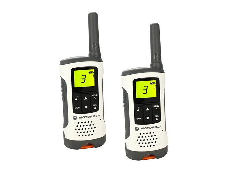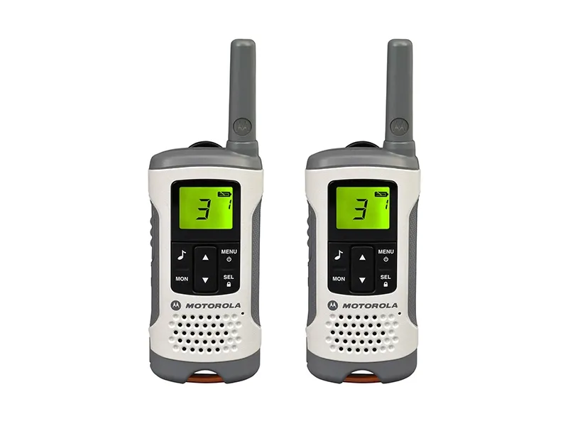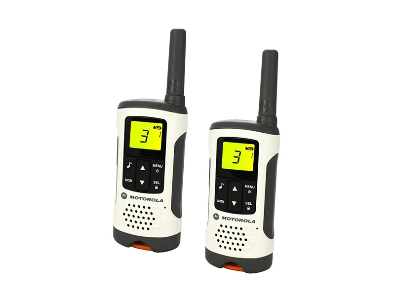 Enjoy the great outdoors and stay connected with the tough and stylish TLKR T50 walkie talkie radio. Whether it’s a day trip, a holiday hike or just a weekend in the wilderness, the TLKR T50 lets you go further and stay in touch.\n\nThe T50 walkie talkie is license free and includes key features such as LCD display, 8 channels and up to 6 km range, with no call charges.\n\nKey Features\n- PMR446 radios – license free\n- Up to 6km range (subject to terrain and conditions)\n- Free Calls\n- Rechargeable NiMH batteries (supplied)\n- 8 Channels + 121 codes\n- Scan/Monitor\n- 5 call tones\n- Room monitor\n\nMechanical\n- LCD display with backlight\n- Keypad lock\n- Battery level indicator\n- Belt clip and carrying loop\n- 500mW Transmit\n\nAlerts\n- 5 Call Tones\n- Keypad tones\n- Talk Confirmation Tone / Roger Beep