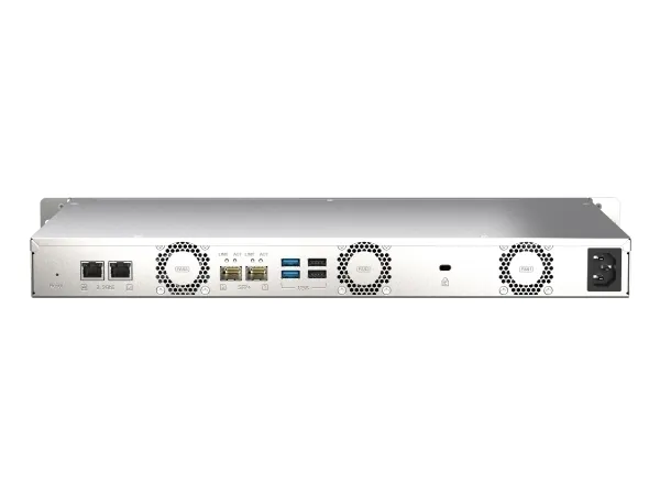 The compact and feature-rich TS-435XeU provides a professional-grade quad-core NAS solution in short depth rackmount form factor. The native 10GbE SFP+ and 2.5GbE connectivity alongside M.2 NVMe SSD slots that enable cache acceleration allows businesses to efficiently tackle everyday tasks like file backup/restore and to boost team collaboration with higher productivity. The space-efficient short depth design makes the TS-435XeU easy to install in small media cabinets or places with a lot of cabling. Supporting abundant business applications (including file sharing and sync, snapshot protection, containerization, cloud storage gateways, and video streaming), expandable storage capacity, and install-on-demand apps, the TS-435XeU is an ideal cost-effective entry-level rackmount NAS.
