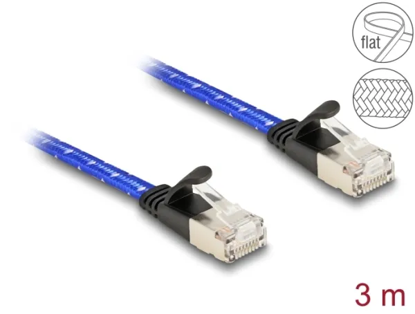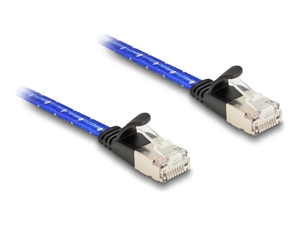 Discover the Delock CAT 6a network cable, a high-performance solution designed to meet the demands of modern network environments. Engineered with precision, it features an American Wire Gauge (AWG) of 32 and is equipped with gold-plated pins and a braided nylon jacket, ensuring both flexibility and durability. The cable's flat, snagless design not only makes installation hassle-free but also prevents tangling and snagging, enhancing its usability and longevity. With tested frequencies up to 500 MHz, this network cable is capable of supporting high-speed data transmission, making it a suitable choice for both home and office applications. Whether you're setting up a new network or upgrading an existing one, the Delock network cable offers a reliable and efficient connectivity solution.