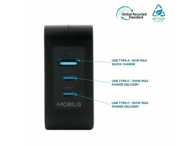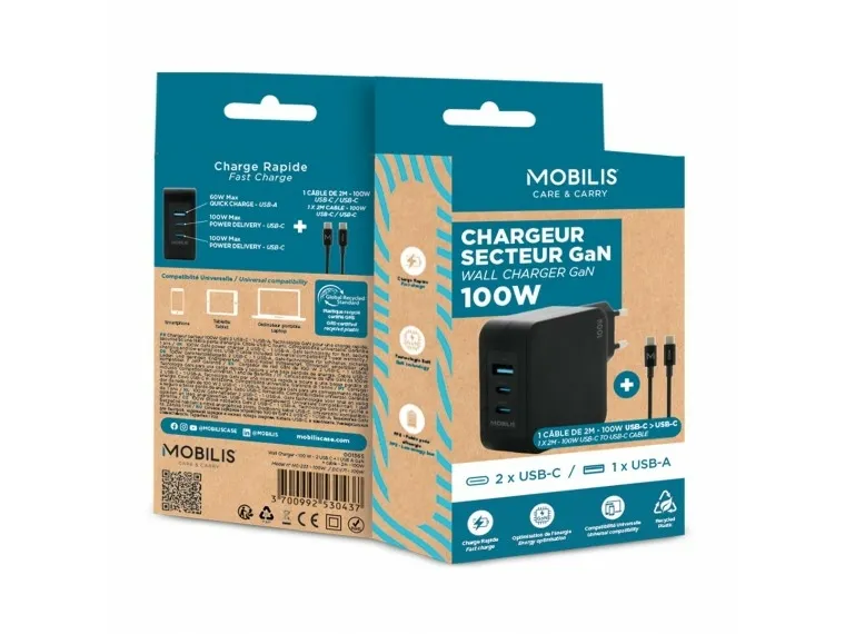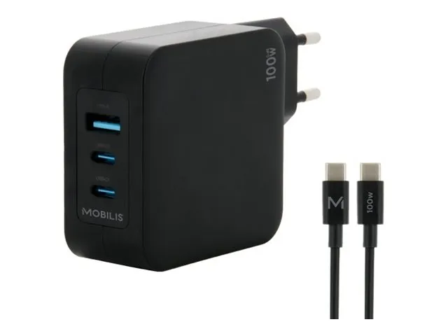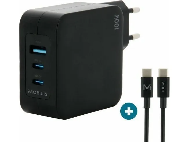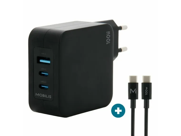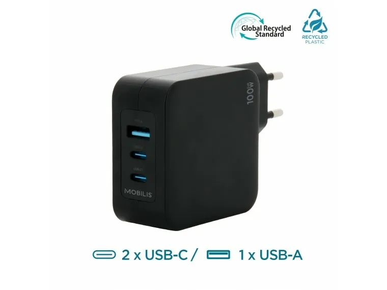 Mobilis strømadapter - rask, gan - USB, 2 x USB-C - 100 watt