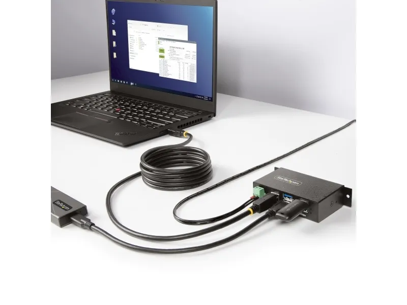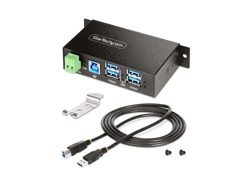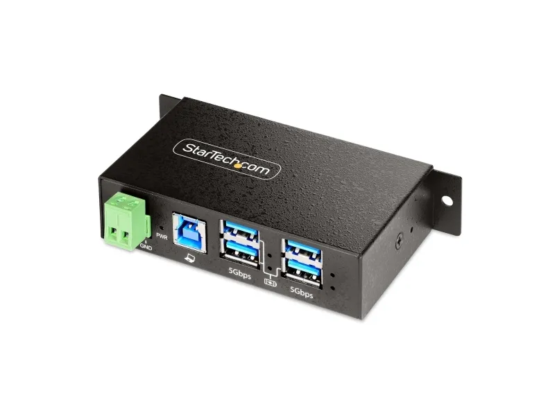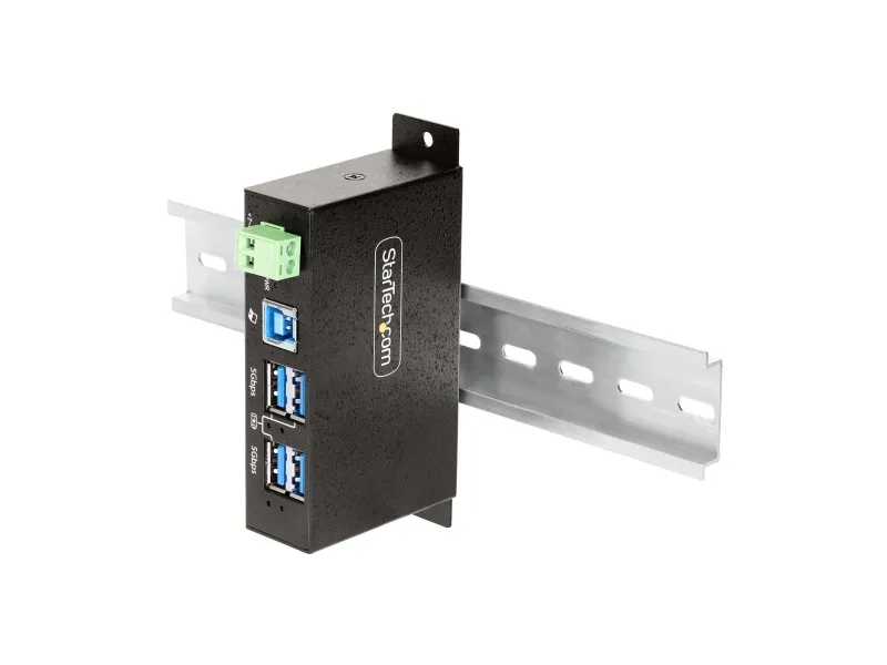 The StarTech.com 4-Port Managed USB Hub is designed to meet the needs of demanding industrial environments. Encased in a robust metal housing, this hub offers exceptional durability and protection against physical impacts. It features advanced ESD and surge protection, ensuring the safety of connected devices against electrical hazards. With support for USB 3.0/3.1/3.2 Gen 1 at 5 Gbps, it provides fast data transfer rates, making it suitable for a wide range of applications.