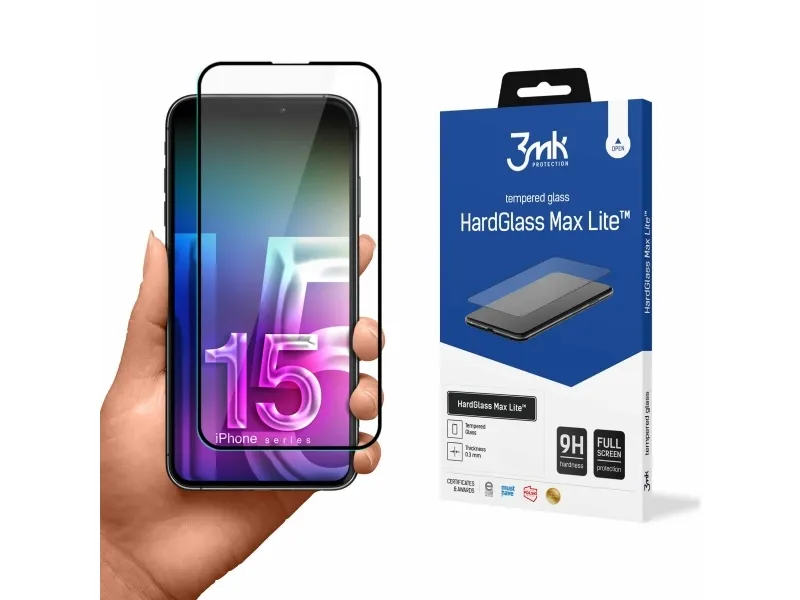 3MK HardGlass Max Lite. Compatibility: iPhone 15 Pro. Quantity per pack: 1 pc(s)