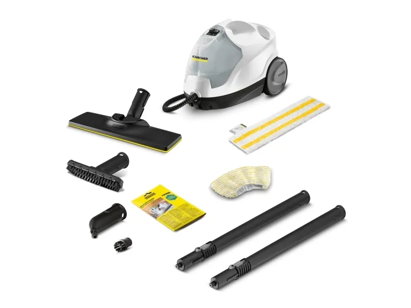 The Kärcher SC 4 EasyFix steam cleaner offers powerful and efficient cleaning with its canister design, making it suitable for various surfaces. With a tank capacity of 0.8 liters and a heating time of 4 minutes, it is ready to tackle messes quickly. The steam pressure of 3.5 bar allows for effective cleaning, while features such as continuous steam and child lock ensure safety and ease of use for all family members. Its versatile accessories include a round brush, floor nozzle, and detail nozzle, allowing for thorough cleaning of diverse areas in your home. The 2.2 m hose provides ample reach, and the 4 m power cord gives flexibility to move around larger spaces. The steam control allows for precise adjustments to cater to different cleaning needs, making this steam cleaner a reliable choice for maintaining a clean and fresh environment.