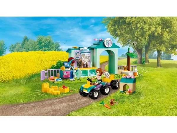 LEGO® Friends Dyreklinikk for gårdsdyr – lekesettet inneholder to minidukker, tre dyrefigurer og masse rollelek-tilbehør for jenter, gutter og barn fra fire år som liker å passe på dyr