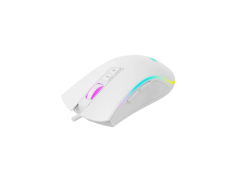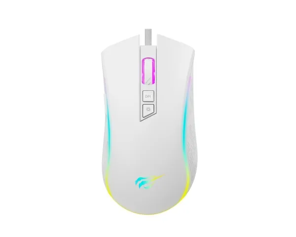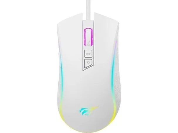 Robust design and reliability The ergonomic design and 144g weight ensure stability and comfort even during long hours of gaming sessions. With a button lifespan of up to 3 million clicks, the mouse will last a long time and the wired connection with a 1.6m cable ensures reliable, lag-free performance. Thanks to the RGB backlighting, every game takes on a unique gaming character.Havit MS1034 - gaming mouse, white. Form factor: Right-hand. Movement detection technology: Optical, Device interface: USB Type-A, Movement resolution: 4800 DPI, Buttons quantity: 7, Scroll type: Wheel. Power source: Cable. Product colour: White