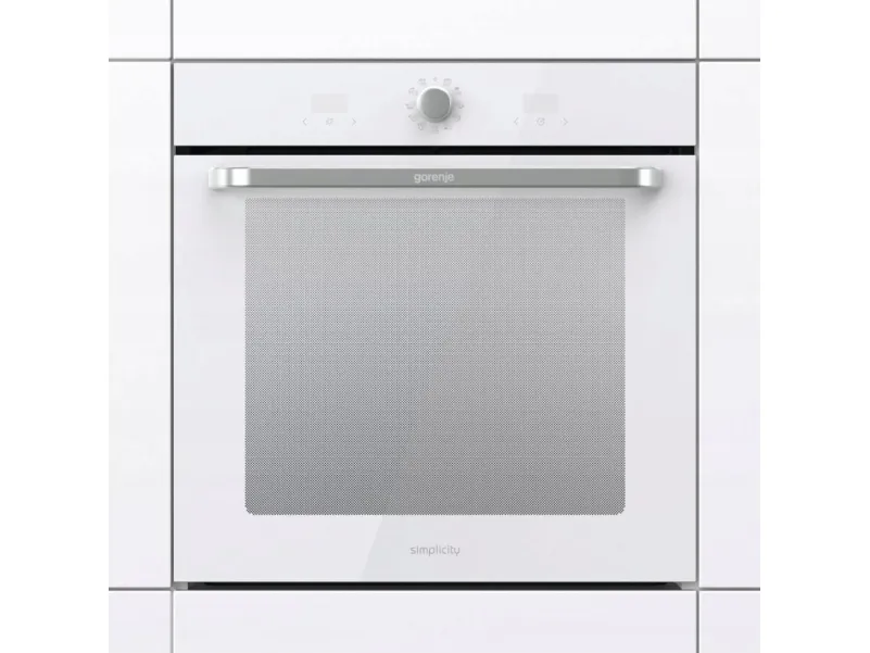 Gorenje BOS6737SYW. Oven size: Large, Oven type: Electric, Total oven(s) interior capacity: 77 L. Appliance placement: Built-in, Product colour: White, Control type: Rotary, Touch. Timer type: Digital. Energy consumption (conventional): 0.82 kWh, Energy consumption (forced convection): 0.97 kWh, Energy efficiency scale: A+++ to D. Installation compartment width: 56.4 cm, Installation compartment depth: 55 cm, Installation compartment height: 60 cm