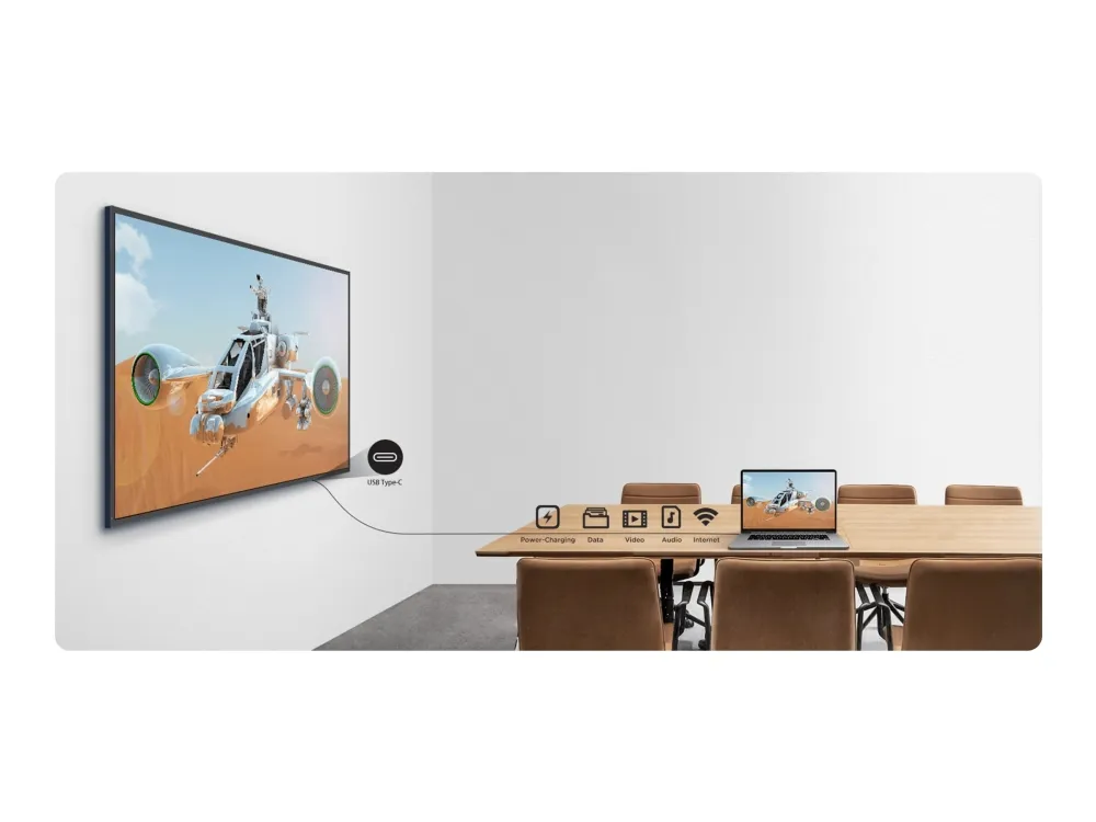 A 4K commercial display, equipped with non-glare technology and conformal coating - ideal for meeting rooms and commercial settings.