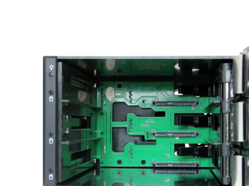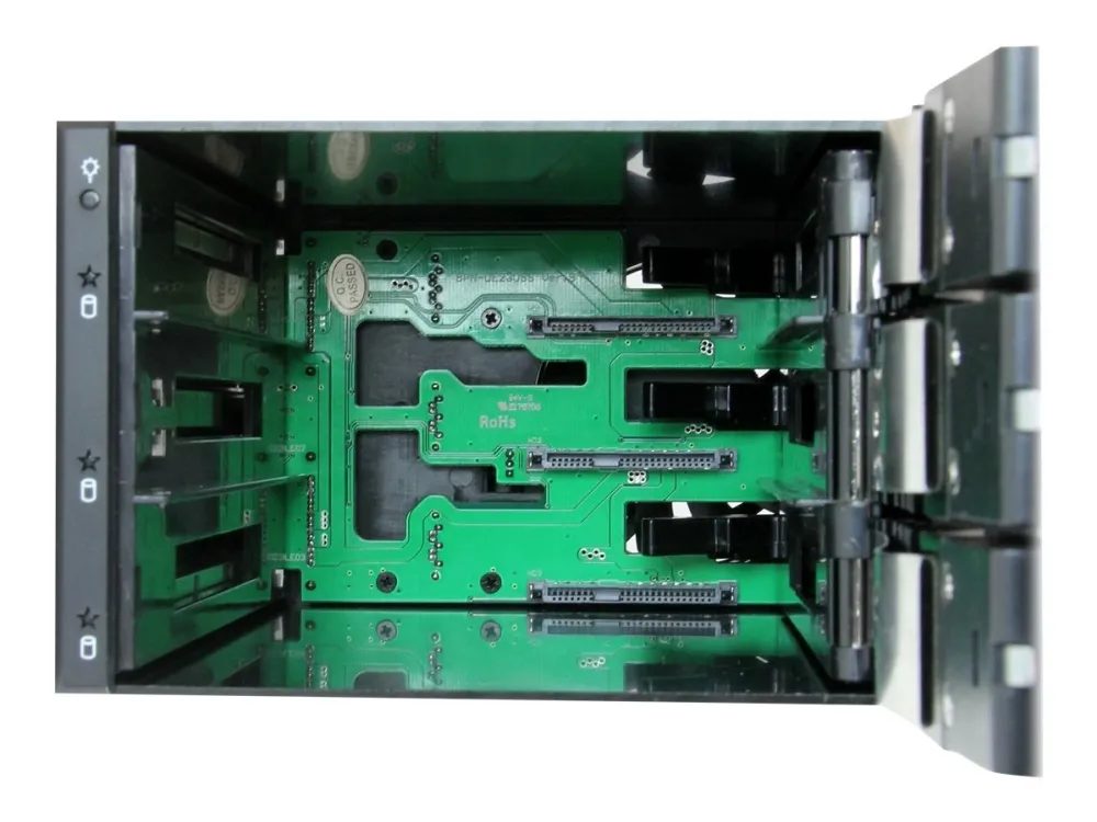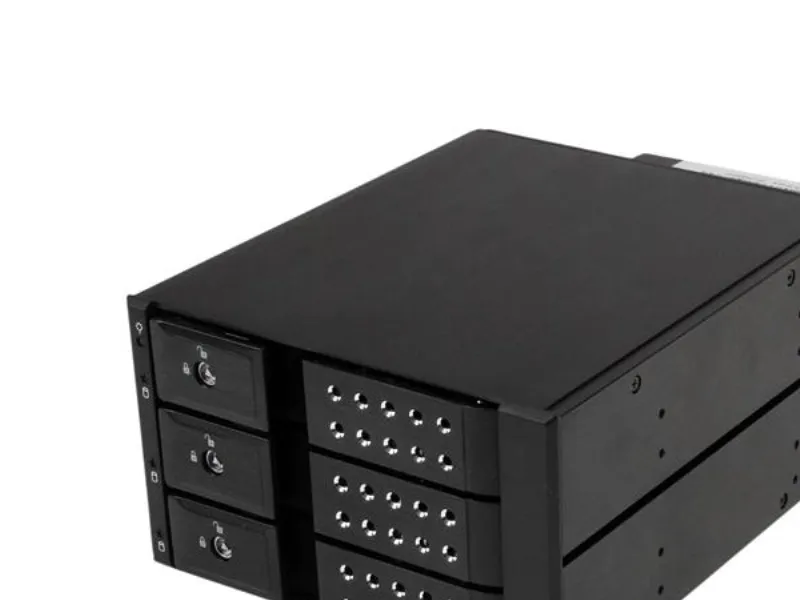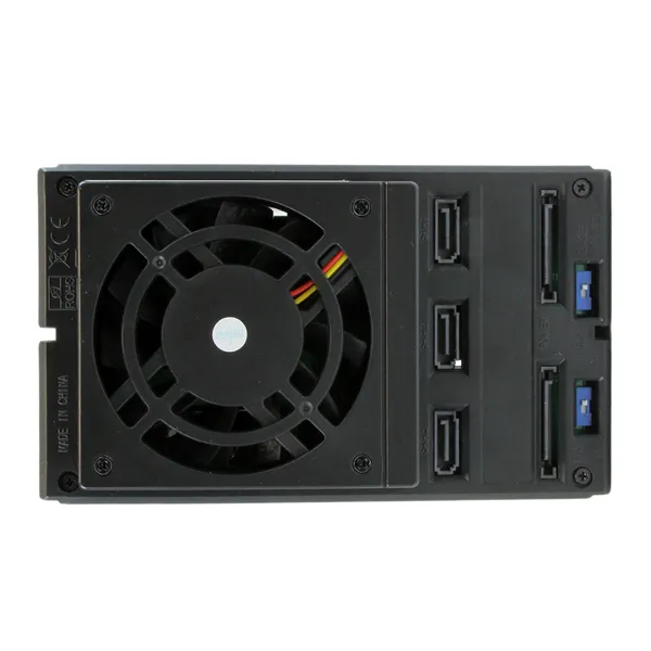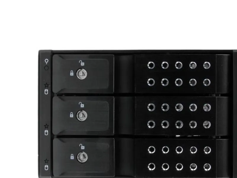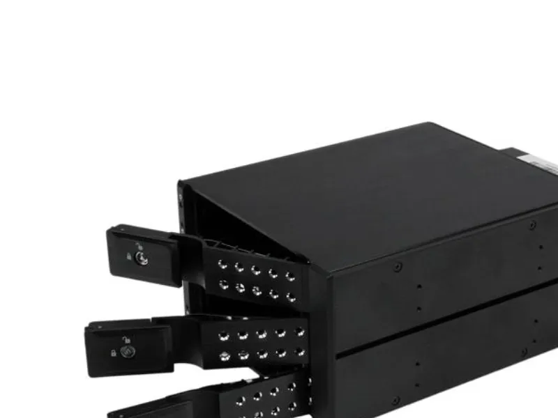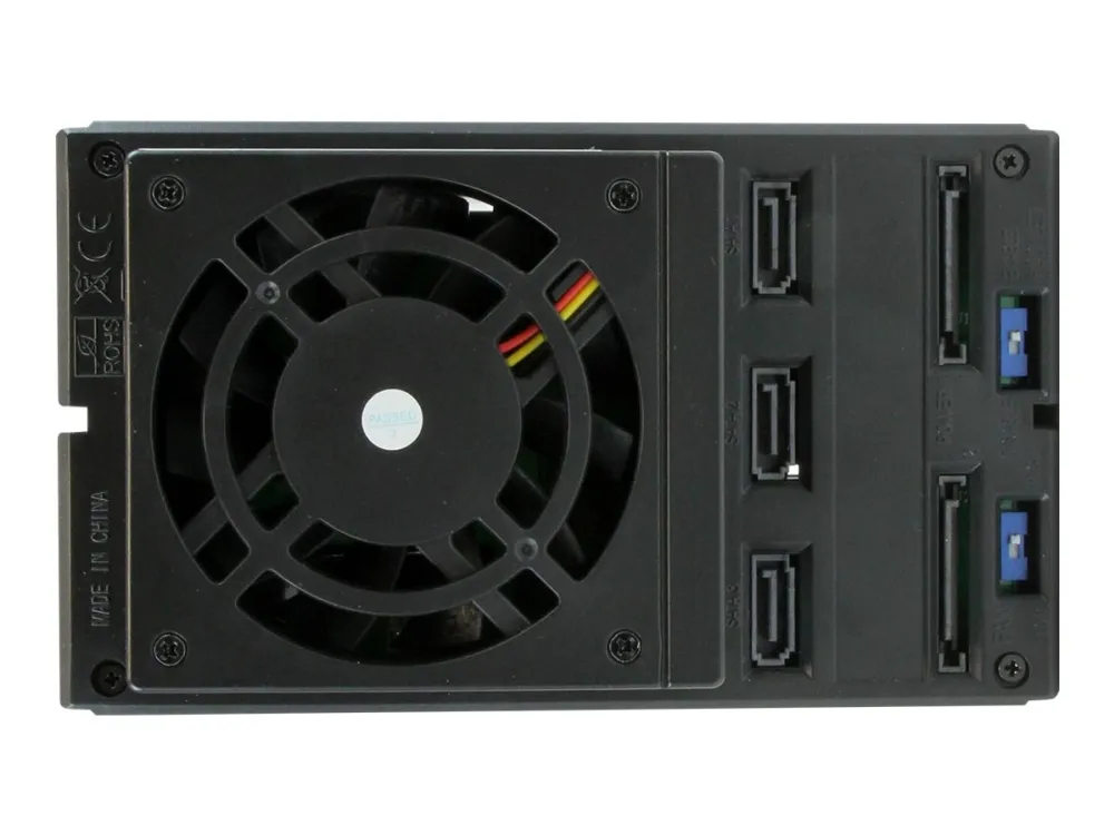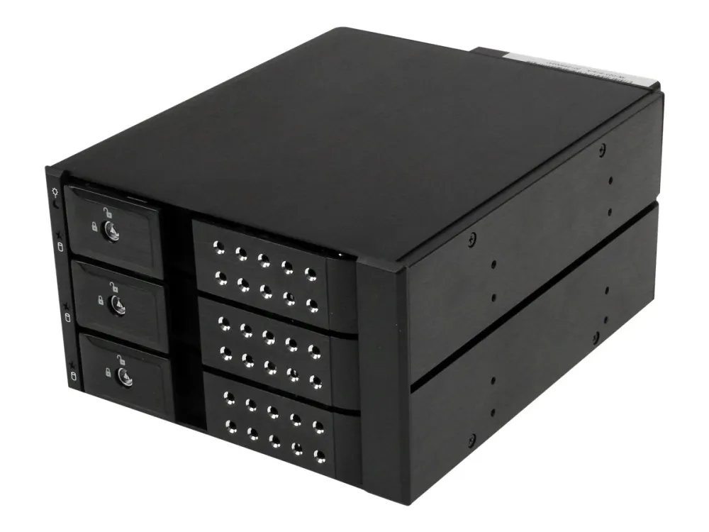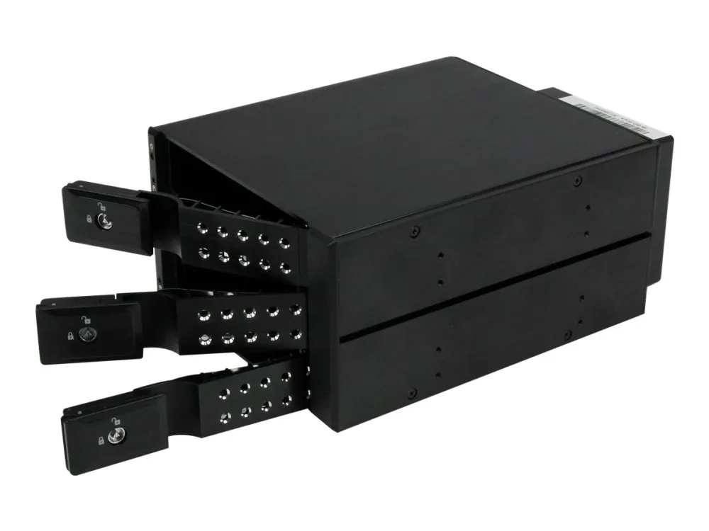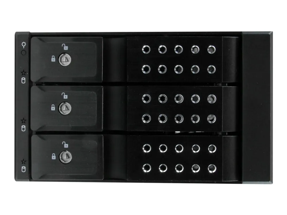 For a quick and secure method of installing and removing drives, the backplane features ejection levers and a key-lock design. To help prevent drive failure, the bay provides excellent heat dissipation with a built-in fan, and a vented solid aluminum enclosure.
