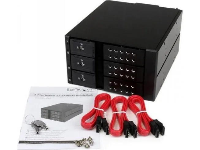 StarTech.com 3-Bay Hot Swap Backplane for 3.5in SAS II/SATA III - 6 Gbps HDD - Aluminum Trayless Mobile Rack Backplane (HSB3SATSASBA) - bevegelig lagerrack