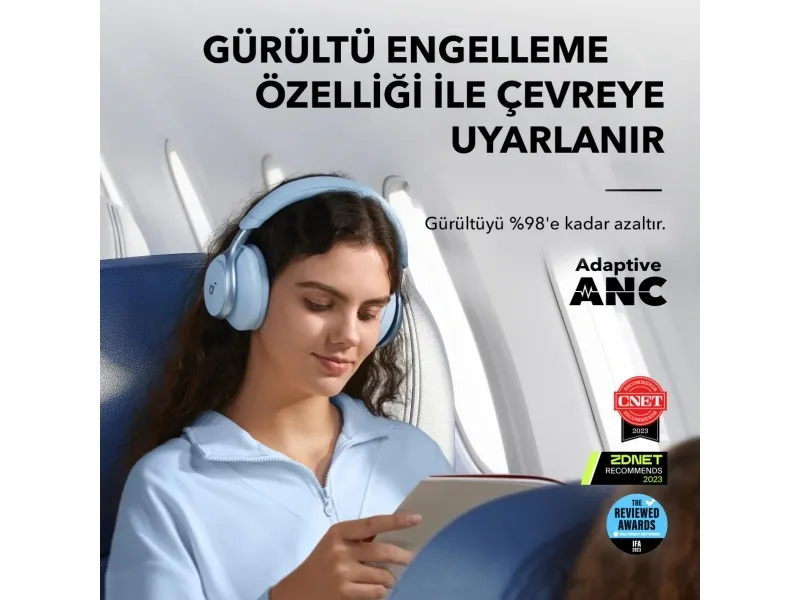 Oppdag Soundcore Space One-hodetelefonene, som er utviklet for deg som ønsker kvalitet og allsidighet i lydenhetene dine. Disse hodetelefonene har adaptiv støyreduksjonsteknologi, slik at du kan konsentrere deg om musikken uten eksterne forstyrrelser. Med Bluetooth 5.3 kan du forvente en stabil tilkobling hjemme eller på farten, og du kan velge mellom trådløs eller kablet tilkobling via en 3,5 mm-kontakt.