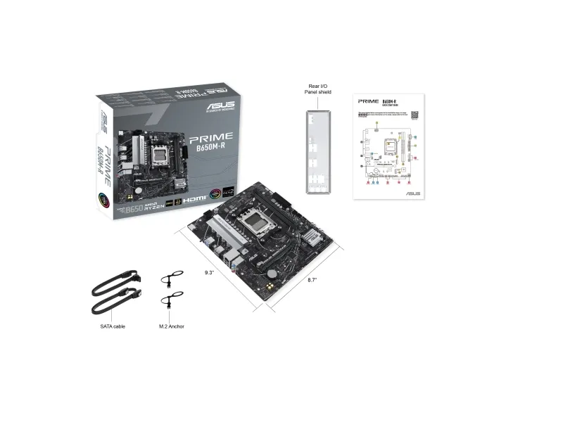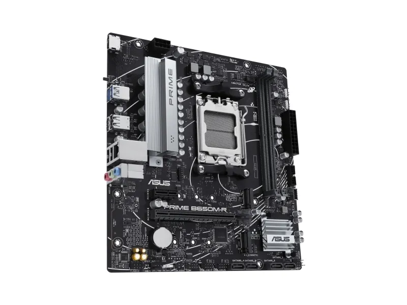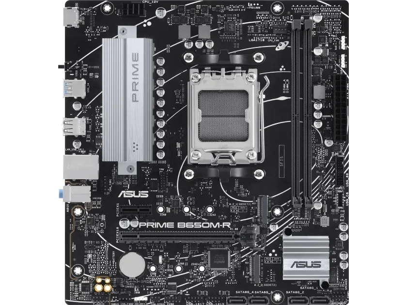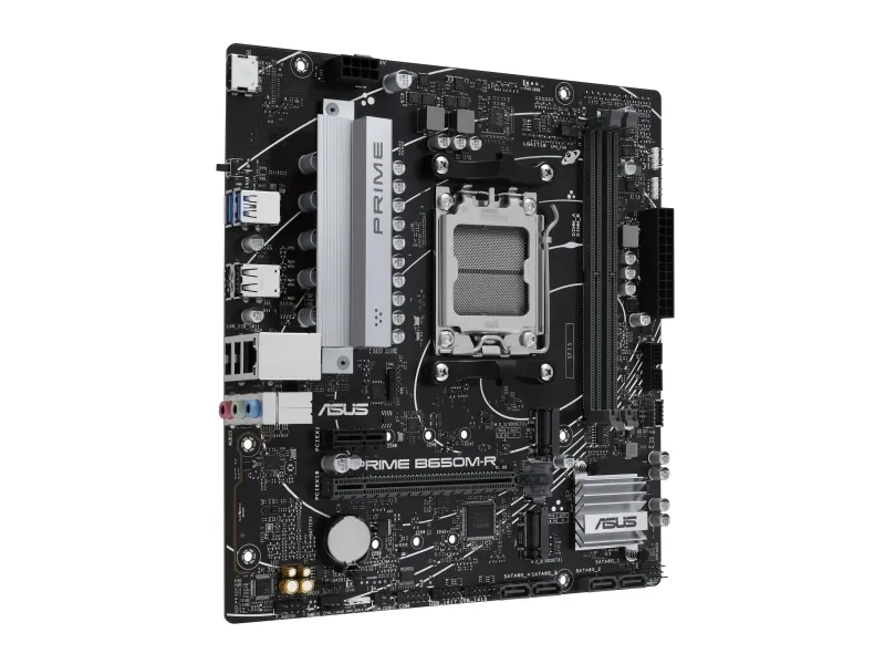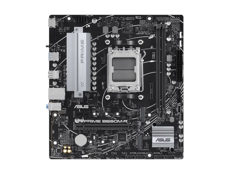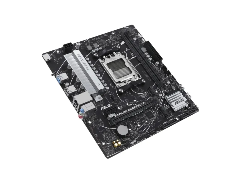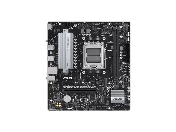 The ASUS PRIME B650M-R motherboard is designed to support Ryzen 7000/8000 Series processors, making it a solid choice for gamers, creators, and PC enthusiasts seeking performance and reliability. It features DDR5 memory support with speeds up to 7200 MHz (O.C.), providing the bandwidth and speed needed for demanding applications and multitasking. With dual M.2 sockets supporting PCIe 4.0, users can enjoy fast storage speeds, while the comprehensive suite of connectivity options, including USB 3.2 Gen 1, USB-C 3.2 Gen 1, and 2.5 Gigabit Ethernet, ensures wide peripheral compatibility and rapid data transfer rates. The motherboard also boasts advanced cooling solutions and a robust power design to maintain optimal performance under heavy loads. Whether for gaming, content creation, or everyday use, the ASUS PRIME B650M-R offers a solid foundation for building a high-performance PC.