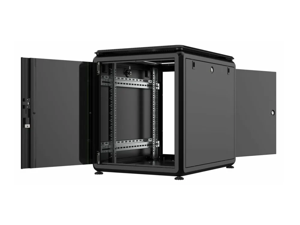 Låsbar frontluke, tastaturlås, glass or steel front door, firkantet hull, avtakbare sidepaneler, IP20-vern, passiv kjøling, avtakbar inngangsdør, kabelstyringssystem, enkel montering, removable back door