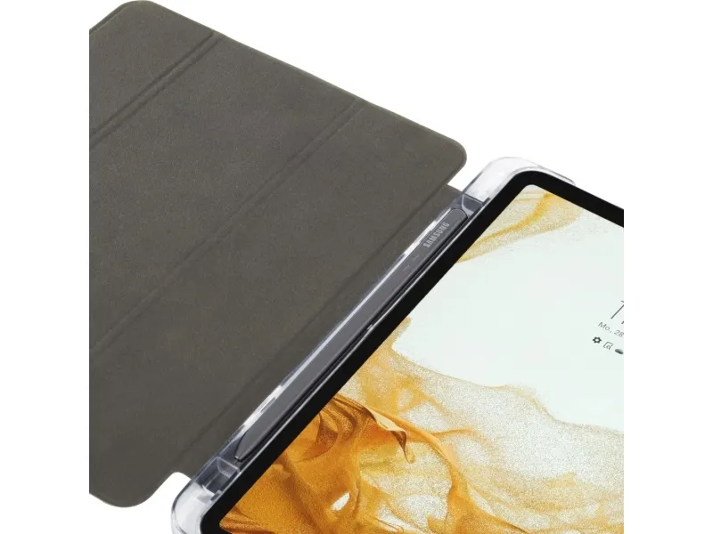OBS! Denne produktbeskrivelse er endnu ikke blevet oversat til dansk af vores oversættere. Derfor er teksten maskineoversat fra den tyske originaltekst. For komfortabelt arbejde og til beskyttelse af Samsung Samsung Galaxy Tab S9 FE 10.9 mod snavs, støv og ridser Praktisk, pladsbesparende stiftlomme i midten af tablet-cases til stylus pen, kuglepen og Co. Med udsparingen på bagsiden er S-pen hurtigt ved hånden og kan stadig oplades og opbevares på det sædvanlige sted Integreret magnet tænder ved åbning af låget for enheden og slukker ved lukning Ståfunktion til bekvem placering af enheden i to trin Tablet-case med transparent bagside: Tablet-pc'ens design forbliver synligt Huller for fuld adgang til tilslutninger og betjeningselementer Pålidelig beskytter: Det robuste ydermateriale er slidstærkt og let Ideel til at surfe, sende e-mails eller se videoer Perfekt standfunktion med nem foldning af låget
