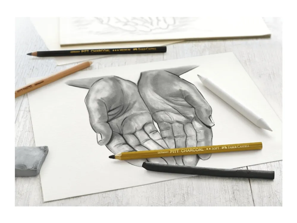 2 x charcoal crayon - 6-11 mm 1 x charcoal pencil - medium 1 x compressed charcoal pencil - soft 1 x fargestift - medium - pastellhvit
