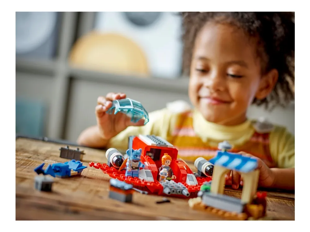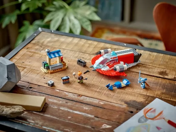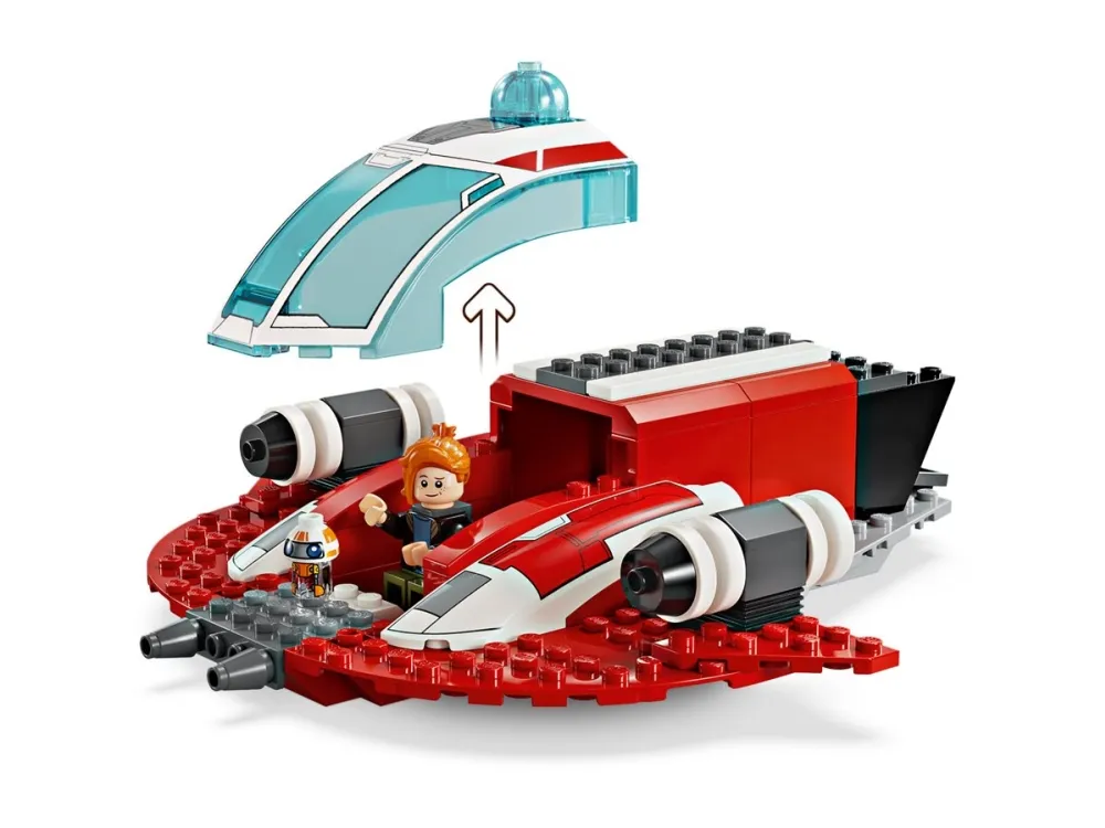 Enkel å bygge – The Crimson Firehawk kommer med en startklossbase som gjør det enkelt å bygge og en cockpit med plass til alle de tre figurene, dessuten får speedersykkelen plass bak i stjerneskipet